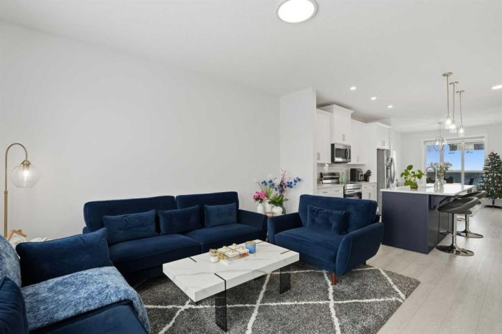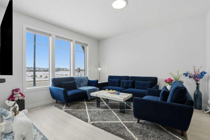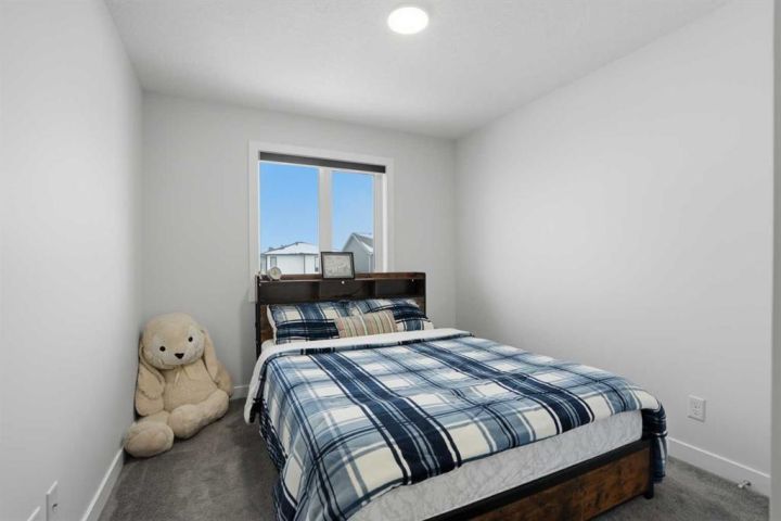 Fully Upgraded | Semi-Detached | 1,588 SqFt | Quartz Countertops | High Ceilings | Wide Plank Flooring | Large Windows | Great Natural Lighting | Two Toned Kitchen | Stainless Steel Appliances | Kitchen Island with Barstool Seating | Pantry | Mud Room & Powder Room | 3 Spacious Upper Level Bedrooms | 2 Full Bathrooms | Upper Level Laundry | Unfinished Basement | Great Backyard | Deck | Fully Fenced | Double Detached Garage with Rear Lane Access. Here's your opportunity to reside in 9 times community of the year: Copper Crossing in Airdrie. This fully upgraded, semi-detached house is available for quick possession. This 2023 built property comes with a plethora of stunning upgrades, a double detached garage, and a side entrance to the 9ft high basement. The entrance opens into a spacious living area bright with natural light. The open concept floor plan adjoins the living room to a gorgeous two tone kitchen that has a large island, quartz counters, stainless steel appliances, plenty of cabinets along with a spacious pantry. The rear dining room overlooks the backyard. The mud room is located perfectly, just next to the rear entrance with access to the garage, backyard, and a wooden deck with a barbeque gas line. This level is complete with a 2pc powder room. Upstairs, this house features 3 bedrooms, a laundry area, and 2 full bathrooms. The primary bedroom spacious enough for a king-size bed, has a walk-in closet and 5 pc ensuite with a separate stand-alone shower and a soaker tub. The other two rooms are cozy and well-lit, sharing a common 4pc bathroom with a tub/shower combo. The unfinished basement is a blank canvas for your future development needs. The basement has a separate entrance and a 3 pc rough-in. The mechanicals are neatly done in one corner which leaves a good space for future developments. Outside, the backyard has the deck for summer BBQs but is also fully fenced which adds to your family's price. Hurry and book your showing today, because this one is sure to sell fast!