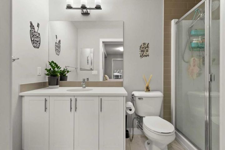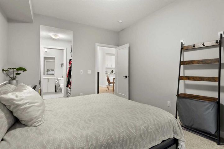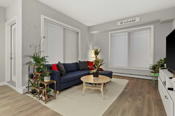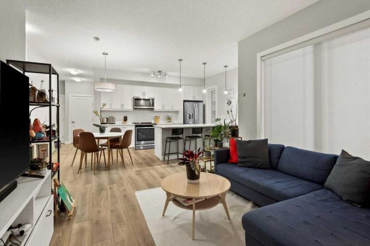CORNER UNIT | 2 BEDROOMS | 2 FULL BATHS | WRAP-AROUND BALCONY | FULLY UPGRADED | UNDERGROUND HEATED PARKING & STORAGE LOCKER! Welcome to this fantastic and spacious 947 sq ft Corner Unit in the highly desirable, lake-access community of Auburn Bay! Featuring one of the largest floor plans in the complex, this bright and modern home offers 2 bedrooms, 2 full bathrooms, and a stunning wrap-around balcony. Step inside to 9 ft ceilings and an open-concept layout filled with natural light thanks to the many large windows complete with custom blinds. The fully upgraded kitchen features white soft-close cabinetry, quartz countertops, stainless steel appliances, and a functional layout ideal for cooking and entertaining. The spacious living room flows seamlessly into the dining area, providing the perfect setting for gatherings with family and friends.The well-designed split-bedroom layout places the bedrooms on opposite sides of the home for maximum privacy. The primary suite offers his & hers closets and a stylish 3-piece ensuite with quartz counters. The second bedroom is generously sized and conveniently located next to the 4-piece main bathroom. In-suite laundry adds everyday convenience. Enjoy your morning coffee or host summer BBQs on the sunny wrap-around balcony, one of the standout features of this home! This unit includes a heated underground parking stall and a secure storage locker. The pet-friendly complex also offers a convenient dog wash station on site. Located in the heart of Auburn Bay, you’ll enjoy lake access, nearby parks, schools, pathways, shopping, restaurants, transit, the YMCA, VIP Cineplex theatres, and the South Health Campus, all just minutes away. Quick access to Stoney and Deerfoot Trails ensures effortless commuting across the city. This exceptional corner unit offers style, comfort, and an unbeatable location. The perfect place to call home!