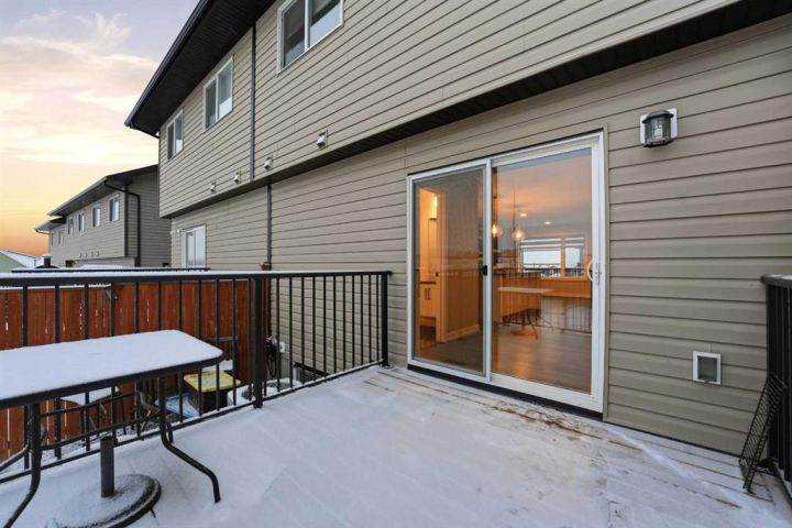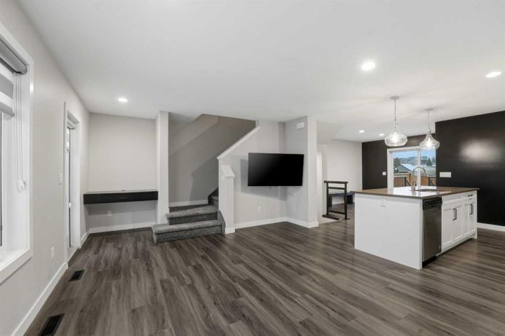 Welcome to this move-in ready townhouse in Ryders Ridge, Sylvan Lake! This beautifully maintained, fully developed property offers three finished levels, no condo fees, and incredible value. The ground level offers a large, versatile space that works as a family room, guest suite (4th bedroom), or income-generating rental. Whether you’re thinking Airbnb or a long-term tenant, this level includes a 4-pc bathroom and tons of flexibility. Perfect for today’s multi-use living. You’ll love the open-concept layout of the main floor that features a modern kitchen with stainless steel appliances, a large island, quartz countertops, tile backsplash and gorgeous white cabinetry with plenty of storage. The bright family room opens onto a zero-maintenance balcony with beautiful Sylvan Lake views. A convenient 2-pc bathroom with in-suite laundry is tucked behind a barn door. Off the dining room, patio doors lead to the fully fenced and landscaped yard that backs onto open fields. Ideal for privacy and those stunning Alberta sunsets. Upstairs, features three generous bedrooms. The primary bedroom is exceptionally spacious and includes its own 3-pc ensuite. A third 4-pc bathroom serves the remaining two bedrooms, offering comfort and convenience for families, guests, or roommates. Located in one of Sylvan Lake’s most sought-after, family-friendly neighbourhoods, this home puts you close to everything: parks, walking trails, playgrounds, and several excellent schools, including École Mother Teresa School and H.J. Cody High School. You’re just minutes to shopping, restaurants, and quick access to Highway 20, making commuting a breeze. Additional features include: Central A/C, Water Softener, Attached Finished and Heated Garage. If you're looking for a beautifully updated, low-maintenance, move-in ready home in Sylvan Lake, this Ryders Ridge townhome offers the perfect mix of comfort, convenience, and lifestyle.