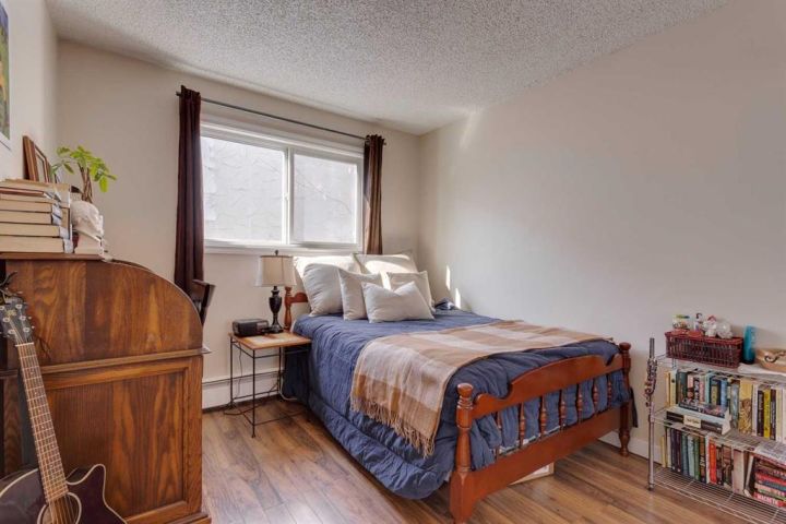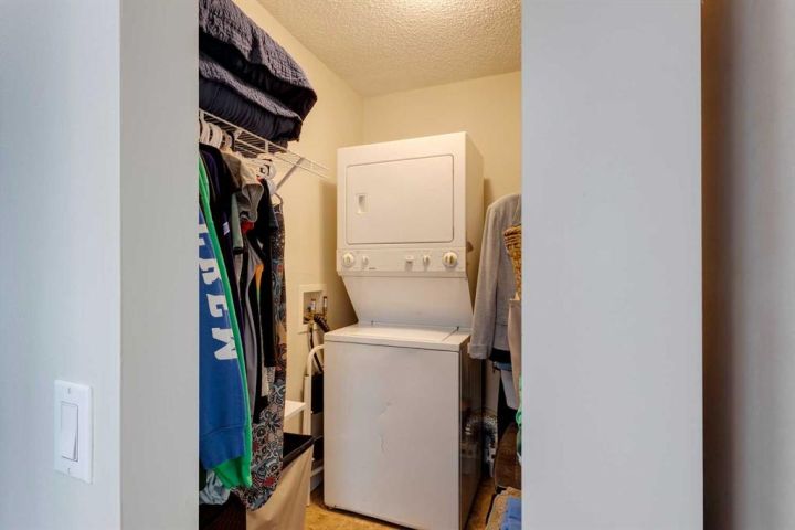 Bright and spacious condo in prime location! In the heart of Bankview, overlooking bustling Beltline and Lower Mount Royal with cityscape views. This two-bedroom, one-bathroom condo is the perfect blend of comfort and charm. Inside, you’ll find a bright and airy open-concept layout where sunshine pours through large windows, instantly making the space feel warm and inviting. The living room is spacious enough for cozy movie nights or hosting friends, while still maintaining that intimate, homey atmosphere. The contemporary kitchen is as stylish as it is practical, featuring sleek appliances, granite countertops, generous cabinet space, and a breakfast bar that’s ideal for casual meals, hosting friends, and your morning coffee. Both bedrooms are spacious and functional. The primary bedroom comes with a generous walk-in closet, including stacked laundry inside! The second bedroom is wonderfully versatile—perfect as a guest room, home office, hobby space, or quiet personal hideaway. Complete with a refreshed four-piece bathroom. Huge pantry/storage closet in the hallway in addition to a linen closet and entry way closet so you aren't left jamming everything in. Step outside onto your private balcony and enjoy lovely city views—an ideal spot to unwind with a good book or take in the liveliness of the city. Additional perks include in-suite laundry, parking stall, pet-friendly, newer vinyl windows, engineered hardwood, cork, and cermaic tile, all in the the comfort of a well-managed building. Living here means being steps away from charming cafés, local boutiques, green parks, and convenient transit options. It’s truly the best of inner-city living wrapped up in a cozy, beautifully maintained space. Perfect for first-time buyers, downsizers, or anyone who wants to live in the heart of the action but not be limited on space.