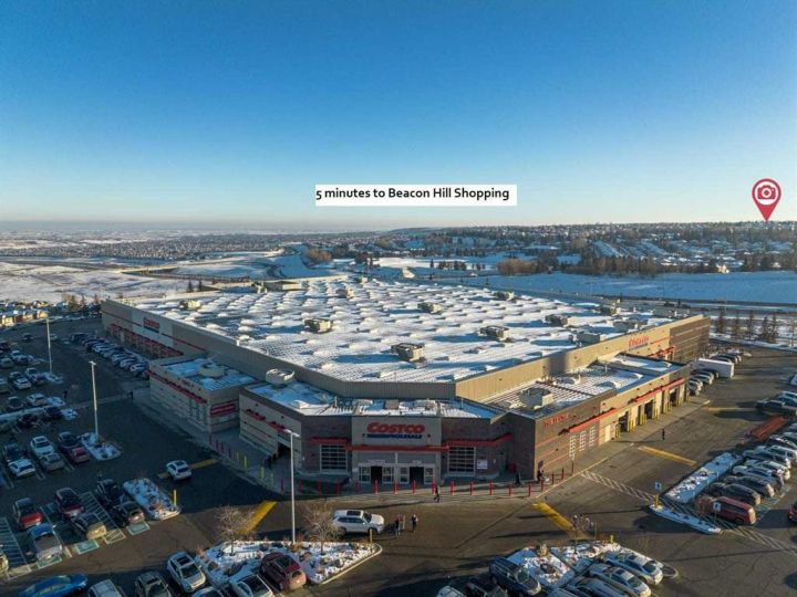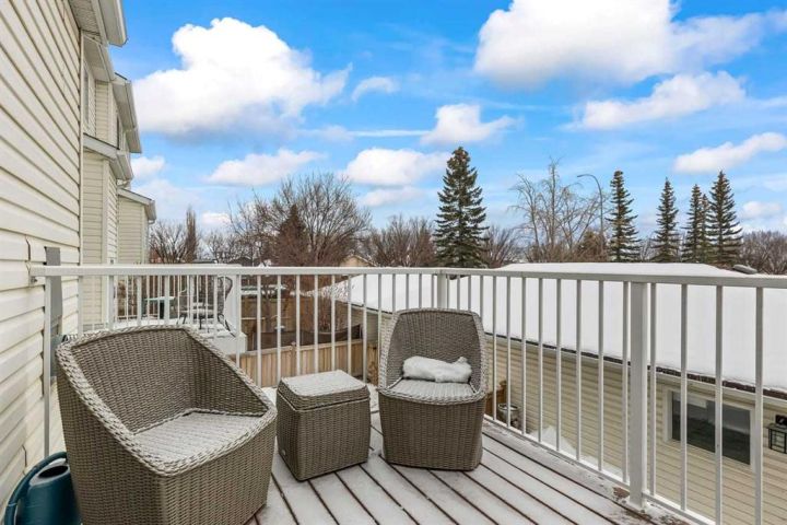 Welcome to this inviting Citadel home featuring a BRIGHT WALKOUT BASEMENT, a DOUBLE GARAGE, and the comfort of CENTRAL AIR CONDITIONING—perfect for year-round living. Offering more than 1500 sq. ft. of thoughtfully designed space, the main floor opens with a welcoming foyer flowing into the living room finished with beautiful MAIN FLOOR HARDWOODS, while the bright kitchen and dining area and a breakfast bar featuring CERAMIC TILE FLOORS and are filled with natural light. Crisp white cabinetry and stainless steel appliances including a HIGH-END GAS RANGE create a clean modern feel, centered around the cozy living area fireplace ideal for family gatherings and relaxed evenings. Upstairs, the spacious primary bedroom offers a peaceful escape complete with a sparkling ensuite featuring a glass shower and soaker tub—perfect for unwinding under the stars. Two additional bedrooms provide comfortable space for family or guests. The DEVELOPED WALKOUT BASEMENT offers versatility for a studio, office, gym or media room with direct access to the yard. Fire up the BBQ on the upper deck as the kids play below on the low-maintenance synthetic lawn and enjoy your above ground vegetable garden. All of this is located close to parks, pathways, schools and multiple shopping options—an ideal blend of convenience and community. Water tank, furnace & A/C all new in 2023 , shingles are 10 years old and the condo board is replacing all windows and the patio door in spring 2026.