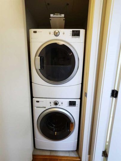 Built-In Gas Range, Built-In Refrigerator, Dishwasher, Washer/Dryer Stacked