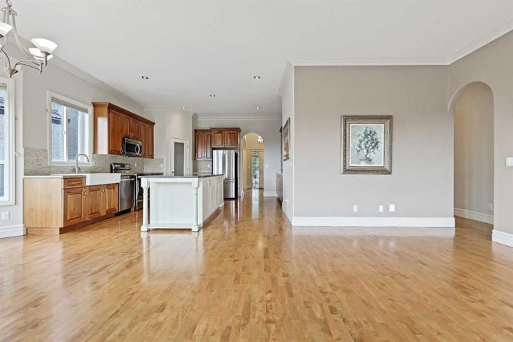 EXCEPTIONAL POND VIEW LARGE WALKOUT BUNGALOW in the prestigious & vibrant,sought-after NW Calgary community of Royal Oak. Welcome to 49 Royal Highland Road Nw!! This meticulously maintained home offers a TRULY BEAUTIFUL SETTING, backing onto a PICTURESQUE POND surrounded by lush trees, greenery & scenic walkways.This large walkout bungalow-style family home boasts 4 bedrooms, 3 bathrooms, & a total of 4,000 sq ft of Living space. As you step into the 0pen Foyer, you'll immediately appreciate the spaciousness, charm and warmth, SOARING 10 FOOT CEILINGS and HARDWOOD FLOORING. The front FLEX ROOM WITH WAINSCOTTING is perfect for a Formal Dining Room. Drenched in NATURAL LIGHT, this home immaculately shows pride of ownership. Bright & spacious GOURMET KITCHEN includes a corner Pantry, AN EXTRA-LARGE ISLAND, and AMPLE COUNTER SPACE AND CABINETS. It opens to a spacious Breakfast Nook overlooking one of the most gorgeous ponds, and a grand Living Room centered around a cozy Fireplace complemented by beautiful built-ins. This home is perfect for entertaining in the grand Kitchen/Family Room or the exquisite Formal Dining Room.The exceptionally open layout of this fully finished home also offers WROUGHT IRON SPINDLES with WOODEN HAND RAILINGS, ROUNDED CORNERS, KNOCKDOWN CEILING, GRANITE COUNTEROPS, STAINLESS STEEL APPLIANCES, and SOARING 10-FEET CEILINGS and CROWN MOULDING throught the Entire Main Floor. Enjoy the UNOBSTRUCTED POND VIEW of the natural reserve from this beautiful walkout bungalow located on a beautiful street with manicured yards.This Must See home is meticulously landscaped, offering great outdoor space to relax & unwind. The main floor also features the Primary Bedroom with a 5-piece Ensuite, Walk-in-closet, two additional bedrooms, another Full Bath, and a Laundry Room/ Mud Room with upper and lower cabinets. This impeccably kept home, surrounded by executive-style residences on a beautiful street with manicured yards shows immense pride of ownership. The lower level with Rough-in Slab Heating, 9FT CEILING and Large Windows Galore is a fully finished walkout with upper Deck & Lower Patio leading to a nicely landscapped backyard, with sprinkler system. It includes an additional bedroom, a full bath, a media room, & a great recreation area perfect for Big parties and your guests. Approximatley 385sq ft Undevloped Storage /Utility Room with Large shelvings for storing all your seasonal items. This RARE, 3 BEDROOM ABOVE GRADE LARGE WALKOUT BUNGALOW also offers an OVERSIZED DOUBLE ATTACHED GARAGE & great Curb appeal. This home has it all, offering incredible POTENTIAL & VALUE! SOUTH BACKYARD! Close to all amenities including Schools, Royal Oak Shopping centre, Parks, Trails, Playgrounds, Shane Homes YMCA, Public Transport & the Tuscany C-Train Station heading to Down Town Core an easy commute. Quick access to Country Hills Blvd, Crowchild Trail, and Stoney Trail. Come Check it out! You Do not want to miss a chance to own this Great Home!!