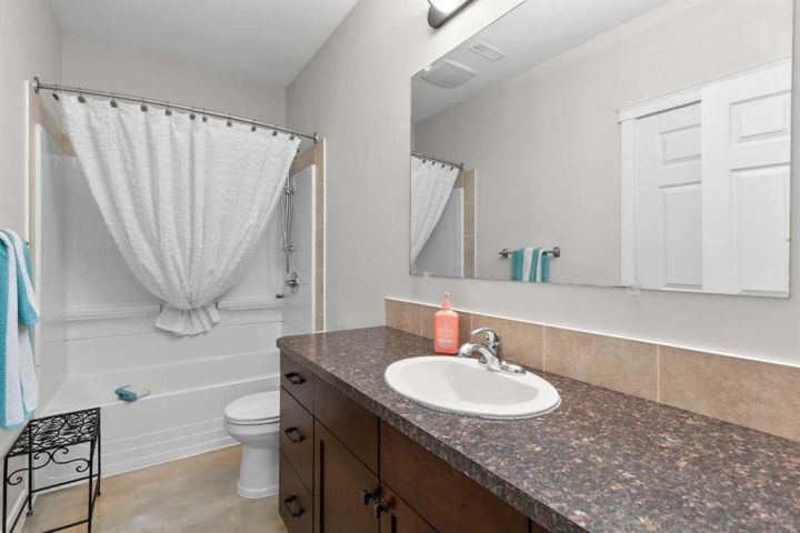 Welcome to this charming and spacious 1,673 sq ft bungalow featuring a rare lofted bonus room above the garage and numerous upgrades throughout. The main floor offers an inviting open-concept layout with a large kitchen that includes granite countertops, a corner pantry, abundant cabinetry, and a generous island overlooking the living and dining areas—perfect for both daily living and entertaining. This level also includes a comfortable bedroom, a full 4-piece bathroom, and the primary bedroom complete with a 3-piece ensuite. Upstairs, the expansive loft above the garage provides an ideal space for a family room, office, or hobby area. The fully developed basement includes an illegal mother-in-law suite with two bedrooms, a 4-piece bath, a spacious living and recreation area, and a kitchen equipped with a fridge, countertop cooktop, microwave, and sink, plus a large mechanical room and additional under-stairs storage. The home features many upgrades such as in-floor heating in the basement and garage, epoxy flooring and 9 ft ceilings in the basement, hot and cold water taps in the garage, a BBQ gas line on the back deck, new shingles and eavestroughs installed in 2025, and a hot water on demand system that is approximately three years old. Outside, enjoy the beautiful front veranda, landscaped yard, large back deck, and oversized storage shed—making this property both functional and inviting.
