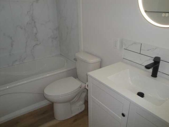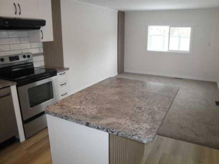 This beautifully renovated 764 sq ft manufactured home offers modern comfort and affordable living in a convenient location. Featuring 2 bedrooms and a upgraded 4 pc bathroom, the home has undergone an almost total renovation including new vinyl plank flooring, updated plumbing, upgraded electrical, new lighting, fresh drywall and paint, new doors, and a rebuilt furnace with central air conditioning. The kitchen is equipped with newer fridge, stove, a new dishwasher and a movable kitchen island . In the laundry room you will find a new washer, and dryer. All the living spaces are bright and welcoming. Step outside to enjoy a brand-new deck, large fenced yard, off-street parking, and a storage shed. With thoughtful upgrades throughout and move-in ready condition, this home is perfect for downsizers, first-time buyers, or anyone seeking affordable one-level living with modern finishes. Buyer must be approved by Bridge Villa Estates management.