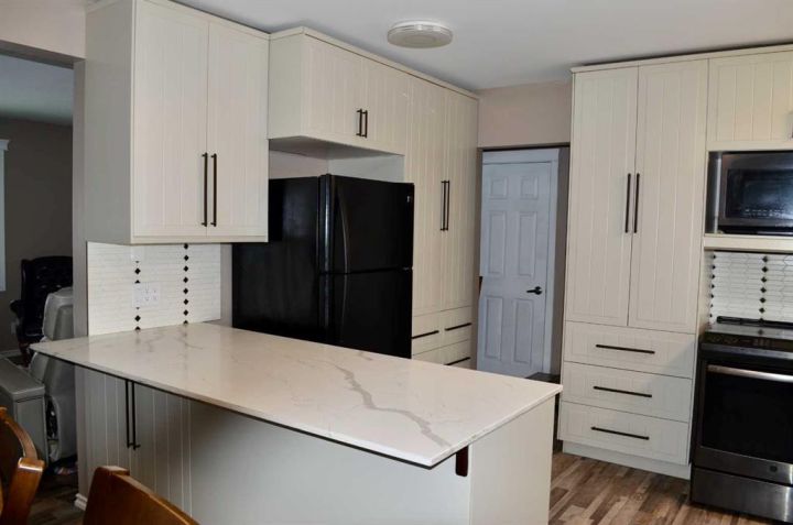 This lovely home features a beautifully updated kitchen with abundant cupboards and storage space. The bright, spacious livingroom offers plenty of room for the whole family. The main floor includes three bedrooms, a full bathroom, and a primary ensuite. The fully finished lower level adds even more living space with a large family room, a bathroom and a laundry room. An additional room currently used as an office could easily serve as a fourth bedroom. The home has seen numerous renovations over the years, including new flooring, updated kitchen cabinets, bathroom, windows and siding. Outside, you'll enjoy a generous yard with a nicely sized deck off the kitchen, perfect for entertaining or relaxing. There is a single detached garage connected by a breezeway, plus a heated double attached garage. With ample parking, including an RV parking pad, this property offers space for all your vehicles and toys. This home is located in a quiet neighbourhood and is ready for its new owners.