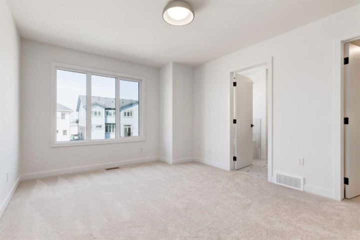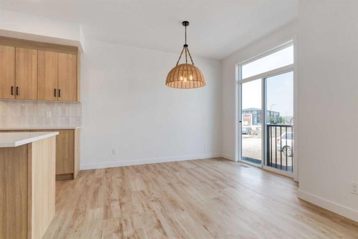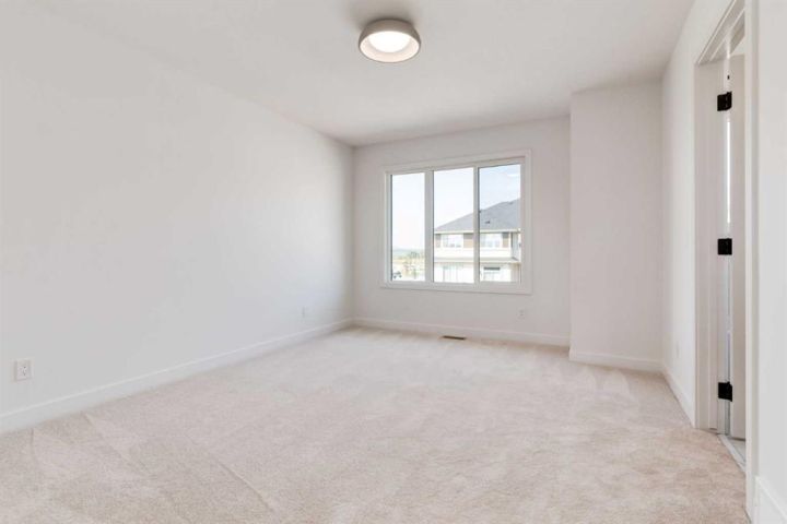 Welcome to the Easton by Rohit Homes, a front-attached garage home offering 1657 square feet, three bedrooms upstairs, a central bonus room, and a separate upper laundry room. This thoughtfully designed home features a 9 foot ceiling on the main level, an oversized 8 foot kitchen island, walk-in pantry, side entrance, and a full appliance package including washer and dryer. Designed for both function and comfort, the Easton delivers a layout that supports everyday living while offering flexibility for growing households. The main floor is anchored by a spacious, open-concept kitchen designed around an efficient work triangle for seamless cooking and entertaining. The oversized island comfortably seats four and serves as the heart of the home, while the walk-in pantry adds exceptional storage. Large rear-facing windows flood the living and dining areas with natural light, creating an open, bright, and welcoming atmosphere. A wide foyer provides practical space for coats, footwear, and everyday organization, while the double attached garage offers room for two vehicles plus additional storage. Finished in the Ethereal Zen interior palette, the interior features custom lighting, curated mirrors, and designer-selected details that create a calm, modern aesthetic with layered warmth and texture. Upstairs, the centrally located bonus room provides flexible living space ideal for a media room, home office, or play area. All three bedrooms are located on the upper level, including a generous primary retreat with a sizeable walk-in closet and a full ensuite featuring a soaker tub and shower. The additional bedrooms are well-sized to accommodate queen beds and workspaces. The separate upper laundry room adds everyday convenience and practicality. Located in the southeast Calgary community of Heartwood, residents enjoy quick access to major roadways, nearby shopping, dining, schools, parks, and everyday amenities. With close proximity to Seton, the YMCA, the South Health Campus, and recreation facilities, Heartwood offers the convenience of established services with the feel of a growing neighborhood. This home is backed by full Alberta New Home Warranty coverage for added peace of mind.