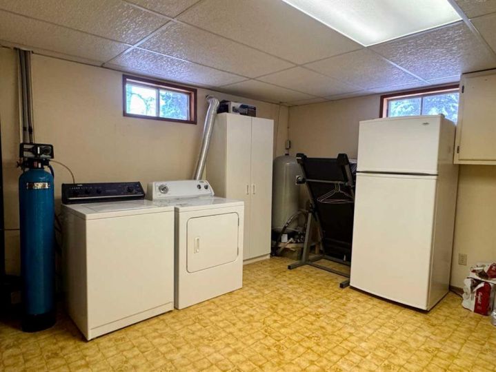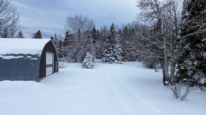 154 acres located on a private, no exit road north east of Rocky Mtn. House. Approximately 100 acres of arable land that has been used for pasture the past few years. The residence is a 16 x 66' manufactured home that was custom built in 1984 and moved onto the existing preserved wood foundation. The main floor features a front end living room with a central kitchen/dining room (note the dishwasher was new in November), small bedroom, four piece bathroom and main bedroom at the far end. Downstairs is a rec room with a walk out on the north side, bedroom, office or storage room, and a large laundry room. The 40 x 60' Quonset has a concrete floor and a 16' mezzanine at the south end. There is an older set of corrals, stock waterer, and a wood boiler that services the house but has not been used in several years. Two surface leases on the property with annual incomes of $2100 and $2800.