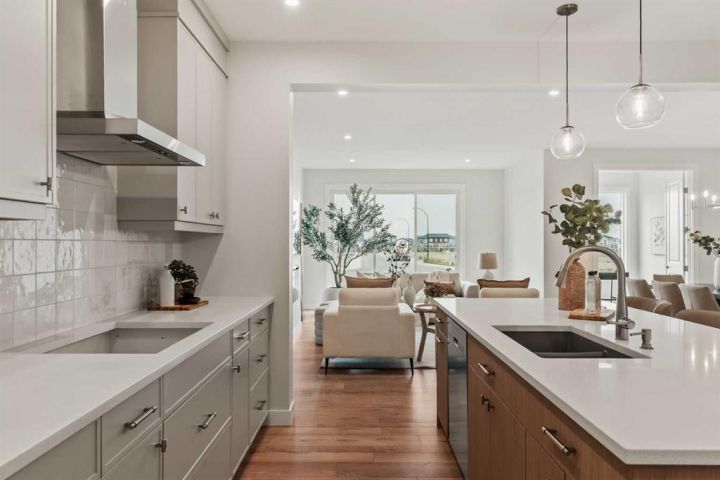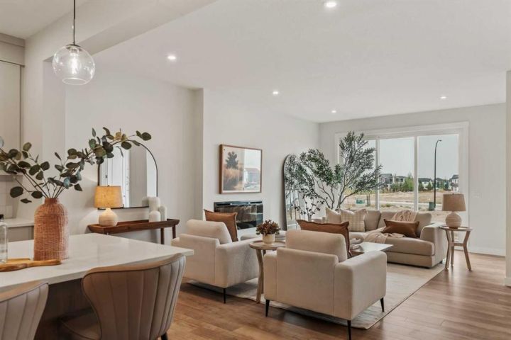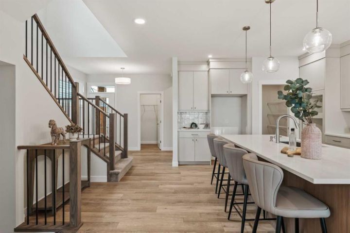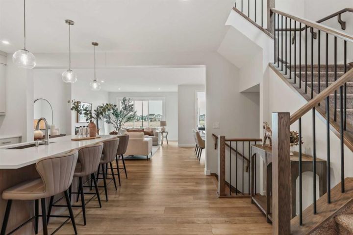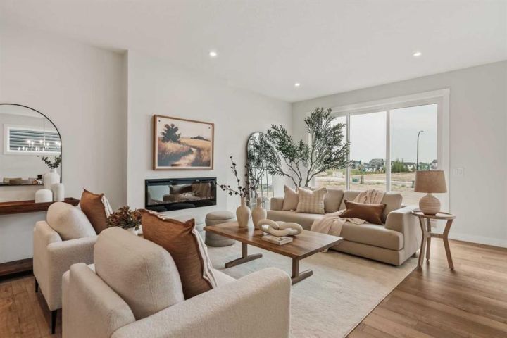 The stunning Columbia 24 model, built by Brookfield Residential, has been thoughtfully designed with an incredibly functional layout. Featuring an open-concept main living space, it boasts an expansive gourmet kitchen with an oversized island, endless storage, and a main-level office/flex room with french doors for added privacy! With nearly 2,500 square feet of living space above grade, this property is ideal for those looking to upsize to a more spacious home without compromising on features. This home offers 3 bedrooms above grade, 2.5 bathrooms, and a basement with 9' foundation walls and a private side entrance - offering limitless potential. The kitchen features beautiful timeless cabinets, warm quartz countertops and sleek tile backsplash. A suite of built-in appliances, including a chimney hood fan, built-in cooktop, wall oven, and microwave, complete the kitchen. The large main level living area offers ample room for all your furniture and includes a central dining area that divides the living room and kitchen. Rounding out the main level is a rear office overlooking the south-facing backyard, a spacious walk-through pantry, a mudroom off the garage, a walk-in front closet, and a 2-piece powder room. On the upper level you'll find a central bonus room separating the primary bedroom from the secondary rooms. The primary suite is a private retreat, featuring a massive walk-in closet and a luxurious 5-piece ensuite, complete with a large soaker tub, walk-in tiled shower, dual sinks, and a private water closet. Two more bedrooms (1 with a vaulted ceiling) each complete with their own walk-in closets, a full main bathroom, and an oversized laundry room with ample workspace completes the second level. The basement is a blank canvas, ready for the new owner's imagination. It comes equipped with 9-foot foundation walls and rough-ins for a bathroom, laundry and sink - making future development easier. This stunning home is steps away from major amenities adding to your everyday convenience. **Please note: photos are from a show home model and are not an exact representation of the property for sale - estimated possession is Summer 2025! Interior selections are noted in the last photo.