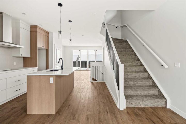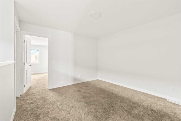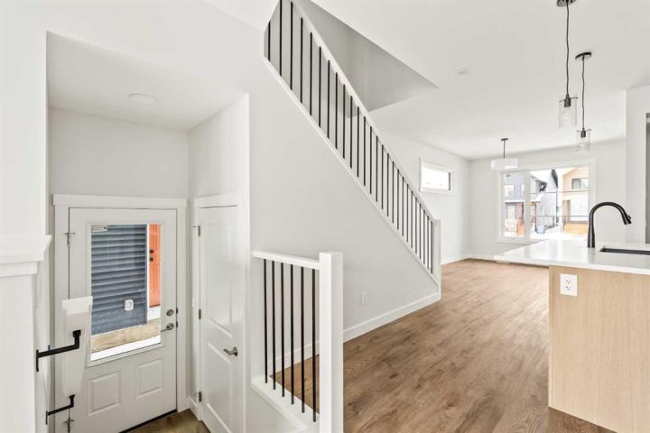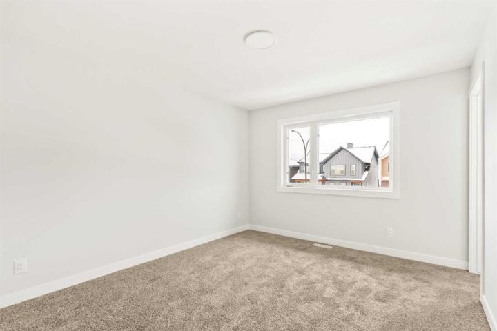 Welcome to the 'Oak' by Brookfield Residential, a beautifully crafted semi-detached home tucked into Calgary’s newest community, Starling. Thoughtfully planned and rich with natural light, this residence blends style, function, and future potential in a way that feels instantly welcoming. Step inside to a layout that truly works for everyday life. Centered around a bright, well-appointed kitchen, the main floor offers seamless flow between the front dining area and the spacious rear living room. The gourmet kitchen package elevates the space with a large central island, ideal for gathering, prepping, or hosting with ease. At the back of the home, the great room frames peaceful views of the backyard and the park beyond, with a full wall of windows and patio doors keeping the space sunlit from morning to sunset. Upstairs, an airy bonus room anchors the second floor, thoughtfully separating the primary retreat from the secondary bedrooms. The primary suite feels like a quiet getaway, featuring a windowed walk-in closet, and a private ensuite complete with dual sinks and a walk-in shower. Two additional bedrooms, a 4-piece bathroom, and a conveniently located laundry room ensure the upper level meets the needs of families, guests, or home office setups. The lower level opens up a world of opportunity. With a private side entrance and basement rough-ins already in place, the space is ready for future development, whether you're envisioning a suite (subject to City of Calgary approval), recreation area, or additional living space. Built with quality in mind and backed by both full builder warranty and Alberta New Home Warranty, this home delivers peace of mind with every detail. In Starling, you’re not just buying a home - you’re choosing a place designed to grow with you.