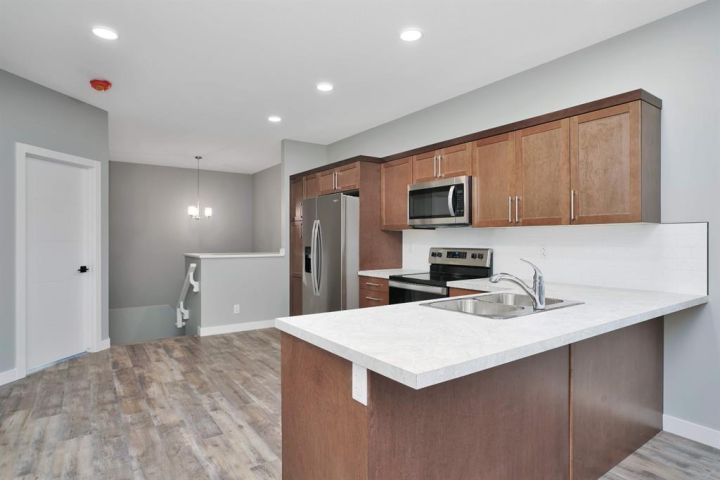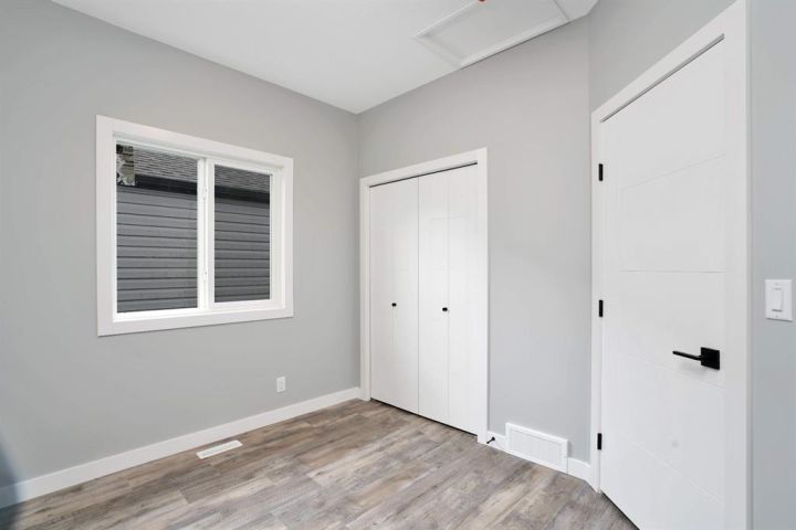 Welcome to Sylvan Lake…your ideal Dream Starter home featuring a two-bedroom illegal suite, a 22x22 finished garage, and an additional parking stall. This beautifully designed Henderson Homes build showcases distinction, quality, and dramatic flair throughout. The main floor offers an impressive L-shaped kitchen with an island eating bar—perfect for casual meals or buffet-style entertaining. A full wall of rich mocha cabinetry, upgraded appliances, and exceptional finishing details create a space that is both stylish and functional. The open-concept layout flows effortlessly from the dining area to the spacious living room, all enhanced by modern LED lighting. Step out onto the west-facing deck to enjoy warm sunlight and breathtaking sunsets. The generously sized primary suite includes a walk-in closet and a private 2-piece ensuite. A second well-proportioned bedroom, a 4-piece bathroom, and ample storage complete the upper level. The lower level is fully developed and features a fantastic two-bedroom illegal suite with its own separate entrance, extra insulation for noise reduction, and shared laundry. This suite mirrors the finishing quality of the main level and includes a full kitchen, a spacious living area, two large bedrooms, plenty of storage, separate heating, and a stylish 4-piece bathroom; all ideal for extended family visits & guests. Outside, the property is fully landscaped with poured sidewalks and is mostly fenced. The finished 22x22 garage is a dream workspace, and the property includes an additional parking stall. Located within walking distance of the lake and all Sylvan Lake amenities, this home sits in one of Central Alberta’s most vibrant four-season resort towns. Additional perks include roughed-in central vacuum and a layout perfectly set up for roommates. Move in and enjoy summer at the lake, this home is ready for you!