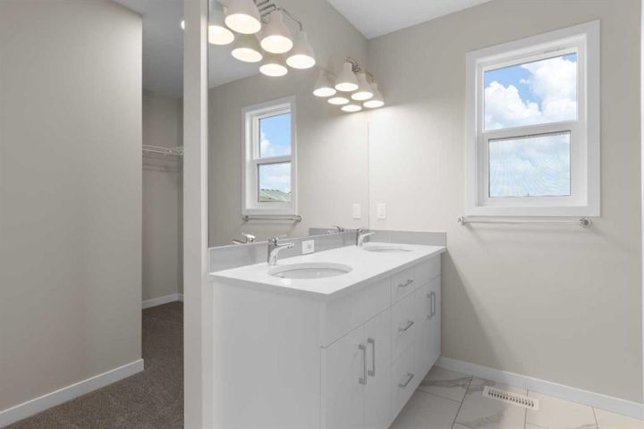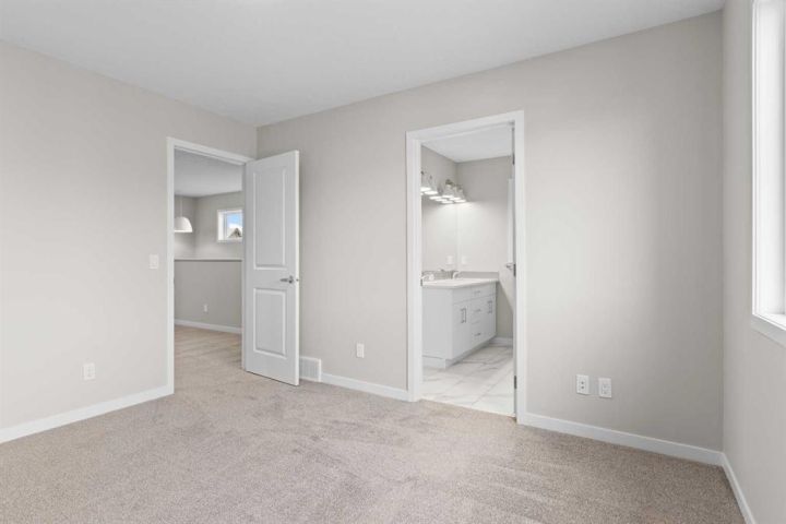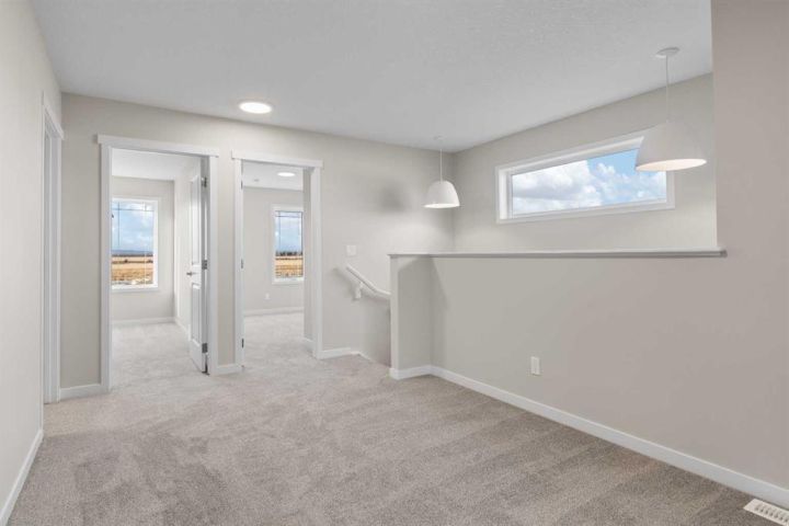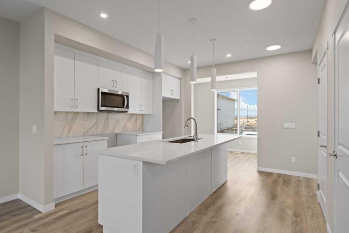 This brand new 3-bedroom, 2.5-bathroom home by Hopewell is ready for immediate possession! The main floor has a bright and inviting open floorplan with a living room/dining room combination, 2-piece washroom, and mud room with back yard access. At the rear of the home is the breakfast nook and modern kitchen with quartz countertops, stainless steel appliances, spacious island with eating bar, and LED pot lights. On the upper level are 3 bedrooms, bonus area suitable for different uses such as a home office or play space, laundry room, and 4-piece washroom. The primary bedroom is spacious and has a walk-in closet and 5-piece ensuite. There is a 9’ foundation height and a roughed-in wet bar sink in the unfinished basement. Extras in this home include luxury vinyl plank on the main floor, triple pane windows, spindle railing, knockdown ceiling texture throughout. There is also a convenient separate side entrance, exterior gas line for future BBQ, and a 20x21’ garage-ready concrete parking pad with back alley access off the west facing backyard. Located close to walking paths, Montrose Pond, the recreation centre, parks, tennis courts and schools, this home is an excellent choice for a family or as an investment. Please click the multimedia tab for an interactive virtual 3D tour.