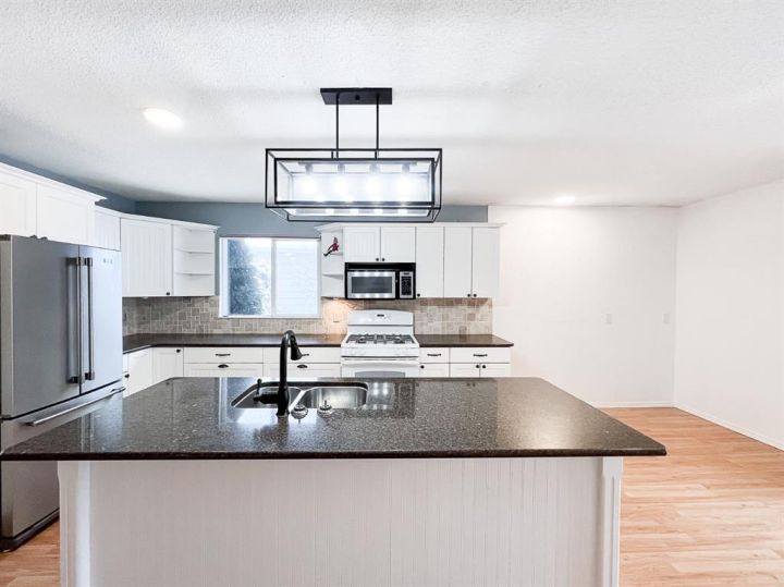 Welcome to this beautifully updated 6-bedroom, 3-bathroom home, nestled in the highly desirable Crystal Ridge neighbourhood. This spacious property offers room for the entire family and includes a full 3-bedroom basement suite with its own private entrance, kitchen, living area, and laundry. Ideal as a rental opportunity or a comfortable mother-in-law suite. On the main level, you’ll find bright, open-concept living spaces filled with natural light from large windows throughout. The main floor features a seamless flow from the living room, complete with a cozy wood-burning fireplace, to the kitchen and dining area, creating an inviting atmosphere perfect for entertaining or relaxing at home. The modernized kitchen offers sleek countertops, fresh cabinetry, ample storage, a functional island, and patio doors from the dining area that lead directly to the backyard. The main level includes three well-appointed bedrooms and two bathrooms, including a spacious primary bedroom with a large ensuite and walk-in closet. Step outside to the private, fully fenced backyard, a peaceful retreat ideal for unwinding, gardening, or hosting gatherings. Whether enjoying morning coffee on the patio or warm summer evenings outdoors, this space truly extends the home’s living area. Thoughtful updates throughout the property blend modern comfort with timeless appeal. Surrounded by nearby schools, shopping, and walking trails, this home seamlessly blends comfort with an ideal location. Offering flexibility, outstanding value, and excellent income potential, this is a property you won’t want to miss. Book your showing today!