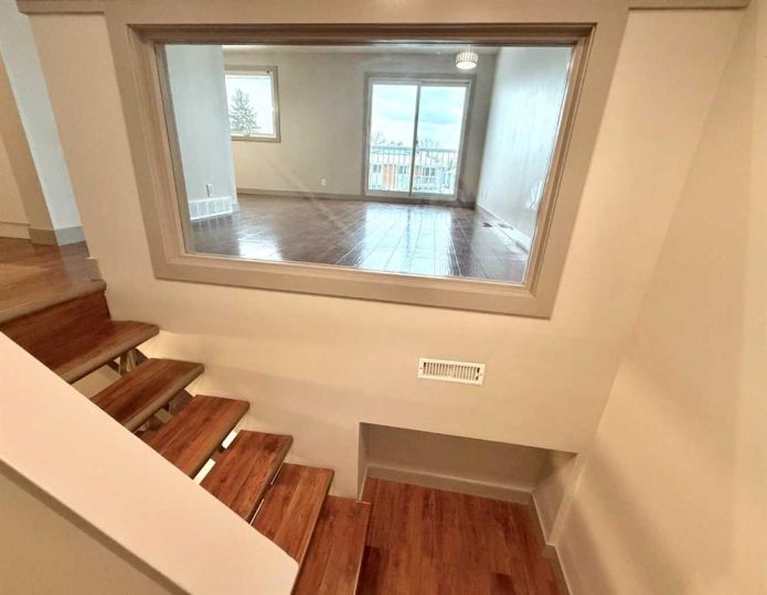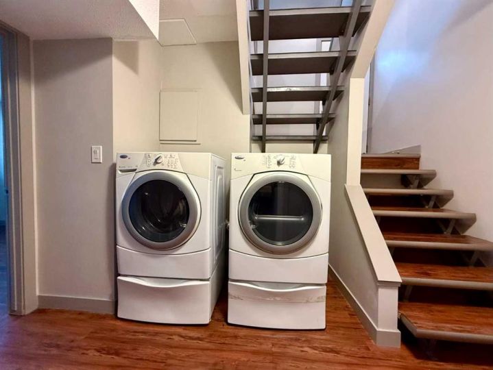 Affordable first home, downsize or revenue property! Located close to GH Dawe Recreation Center, Schools, Playgrounds, Shopping, Transit and Woody's Spray Park! This cozy home is move in ready with 2 Bedrooms / 1 Bathroom plus convenient in-suite laundry. Features include: Vinyl windows, white kitchen cabinets, built-in dishwasher, pantry, laminate flooring throughout, fresh paint, balcony with dura deck & metal railing. Bi-level style layout includes kitchen, dining, and living room upstairs. Bedrooms, bathroom, and laundry are located on the lower level. Large windows on both levels bring in plenty of natural light. There's 1 assigned parking stall with electric plug-in. Additional street parking available at the front of the building plus parking for your visitors. Units have been known to lease for upwards of $1400/Month, with Tenants paying the utilities. Condo fee is $331.85/month. Pets allowed pending condo board approval.