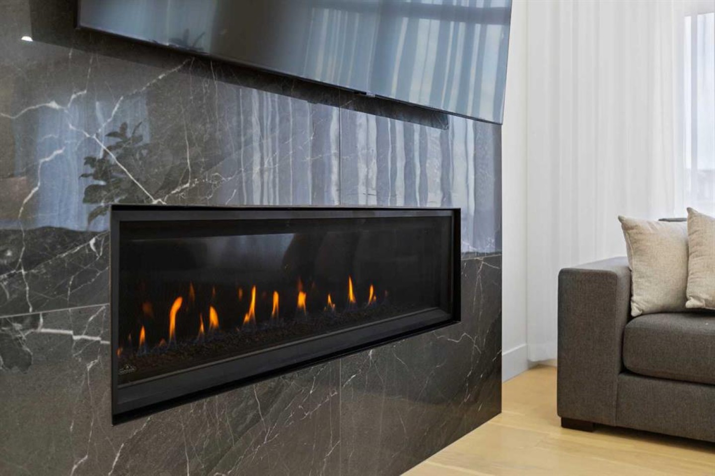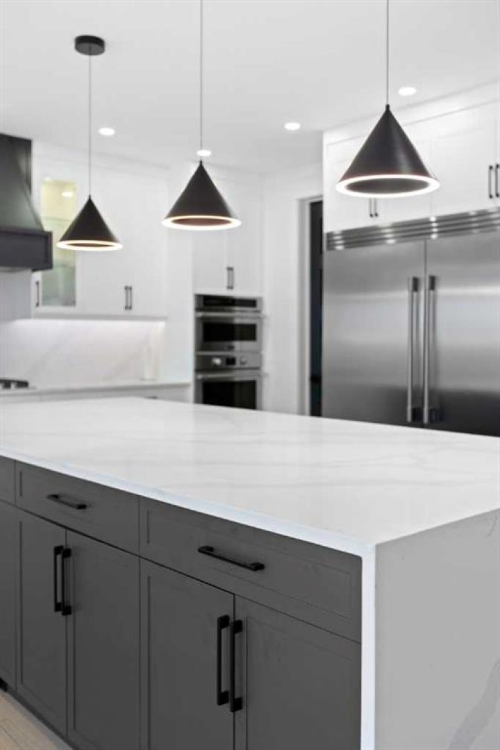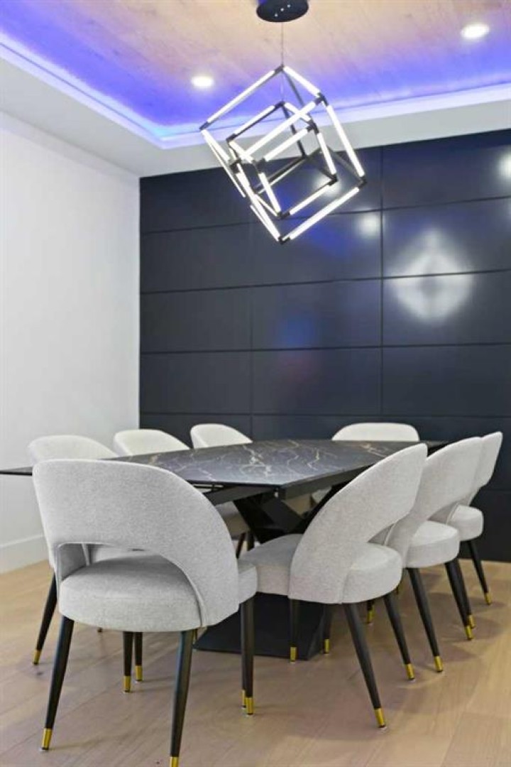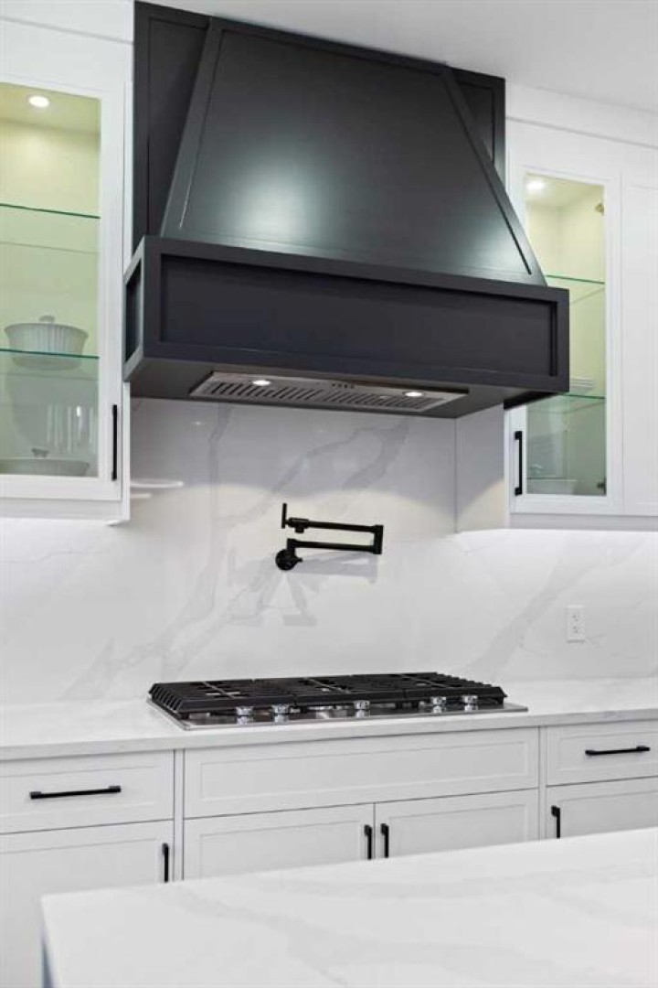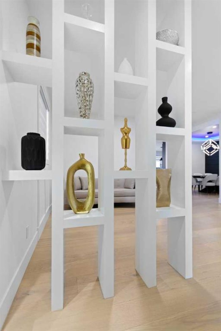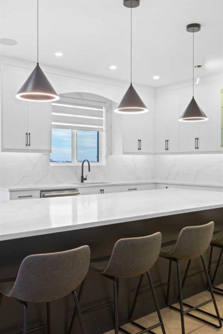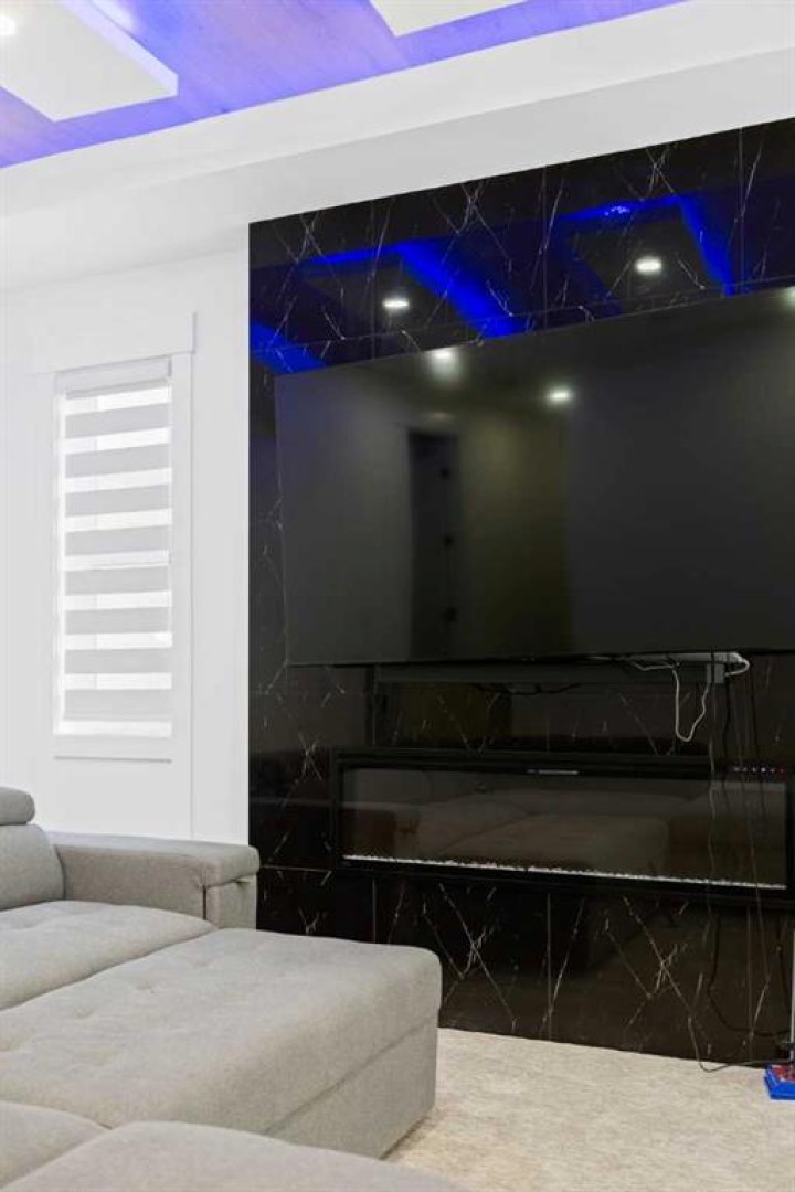 This home is currently under construction. Photos are for representation purposes only and are not of the actual property. Finishes, features, and specifications may vary. Welcome to a truly exceptional Modern Beach House–inspired luxury residence, perfectly situated on a large pie-shaped lot and backing refined design with resort-style living. Featuring a triple car garage, expansive outdoor spaces, and a fully developed basement, this home is thoughtfully crafted for elevated family living and entertaining. The main level makes an immediate impression with its open-to-above family room, soaring ceilings, and abundant natural light. Designed with 9-foot ceilings and 8-foot doors, this floor includes a main-floor bedroom and full bathroom, ideal for guests or multigenerational living. The chef’s kitchen is a showpiece, equipped with custom cabinetry, quartz countertops, built-in wall oven and microwave, gas cooktop, oversized fridge/freezer, and dishwasher. A spice kitchen with pantry enhances functionality, while a custom island with a flush eating bar and architectural ceiling detail anchors the space. A separate dining area features a designer accent wall and custom ceiling treatment, while the living area is warmed by a built-in gas fireplace. Practical touches include custom mudroom cabinetry with bench seating and MDF shelving throughout all main-floor closets. Step outside to an expansive deck, perfect for outdoor entertaining. The upper level is designed for comfort and connection, offering four bedrooms, three full bathrooms, a dedicated laundry room, and a spacious bonus room overlooking the open-to-below living area. The bonus room features tray ceilings and custom media built-ins, creating an ideal family lounge. Secondary bedrooms are connected by a Jack & Jill bathroom, while the primary retreat is a true sanctuary—complete with tray ceiling, private balcony with glass railing, and oversized patio doors. The spa-inspired ensuite includes a double vanity, freestanding soaker tub, steam shower with full tile surround and glass doors, heated floors, and a striking two-sided fireplace, paired with a custom walk-in closet featuring MDF shelving. The fully developed basement expands the home’s versatility with two large bedrooms, a full bathroom, a theatre room, a home gym, wet bar, and generous storage, all complemented by approximately 9-foot ceilings—perfect for entertaining, guests, or extended family living. The exterior showcases a sophisticated blend of Hardie Board board-and-batten detailing, stone masonry, upgraded front entry, and LED lighting, enhancing curb appeal from every angle. Multiple outdoor living spaces—including a covered deck and balcony with glass railings—complete this resort-inspired design. Bold. Refined. Unforgettable. This home delivers architectural presence, luxury finishes, and thoughtful design—setting a new standard for modern living.