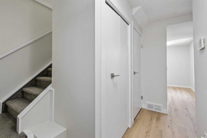 *** Open House Saturday December 13th 12-2PM *** BEST UNIT IN THE COMPLEX, FULLY RENOVATED. Welcome to 64 Whitnel Court NE #24, a beautifully reimagined CORNER UNIT townhouse tucked into a quiet, well-kept complex in Whitehorn. FULLY RENOVATED from top to bottom, this home features a brand-new kitchen with crisp white shaker cabinetry, quartz-style counters, subway tile backsplash, brand new stainless steel appliances and a new washer and dryer. Fresh paint, wide-plank flooring and updated lighting run throughout, creating a bright, modern feel in every room. The spacious living area flows seamlessly to a MASSIVE PRIVATE BACKYARD, a rare find, perfect for kids, pets and summer entertaining. Upstairs you’ll find comfortable, sun-filled bedrooms and a stylish full bathroom, while a convenient main-floor powder room, modern doors and hardware complete the interior. As a true CORNER UNIT with only one common wall and no neighbours behind, the home enjoys exceptional privacy, backing directly onto a green space and walking path. Parking is effortless with one assigned stall plus tons of visitor parking, and you’re just moments from schools, transit, parks and everyday amenities. A turnkey opportunity for buyers seeking space, style and convenience.