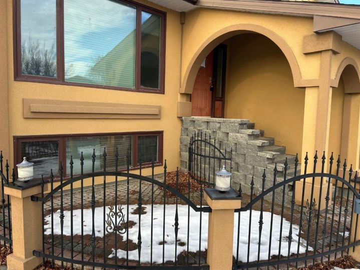 Check out this four level split home, featuring 4 bedrooms, 3 bathrooms, with a 3rd level walk out to a carefully landscaped mature yard. A fun feature is is the oversized shed that became a motorcycle garage or could be a great studio, playhouse or hobby room or just extra storage so an ideal "man/woman cave". This home will require some TLC to bring it back to the potential it can be. Some new flooring, paint and trim would go a long way. Most windows appear to have been replaced at some point. The exterior is stucco so mostly maintenance free. The location is perfect, being steps from Jenny Emery Elementary School in an established neighbourhood. There is a Double front driveway with attached heated garage and an extra parking space in front of the motorcycle garage. The corner lot features interlocking brick sidewalks and patio areas and the rod iron fences gives the home nice curb appeal. The evidence of some interior ceiling damage came from the primary bedroom bathroom as a result of a water line that froze in the house while unattended in 2024. The home has been vacant from then on and is now being Sold As Is. All offers must have Schedule A which means the bank cannot warranty any items in the home and the property is being purchased as viewed.
