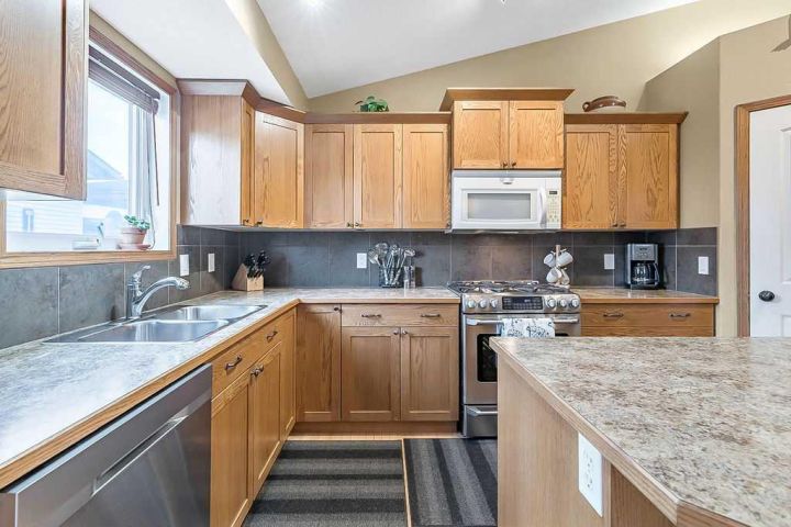 **OPEN HOUSE-SATURDAY 20th - 12:00-2:00** Welcome to this move in ready bi-level residence on Sunrise Way, truly a gem for families seeking a comfortable, updated living space for today's needs. As you step inside, you'll immediately feel the warmth and brightness that comes from the vaulted ceilings and an abundance of large windows that fill every room with natural light. The smartly designed open layout makes daily life and entertaining a breeze, with beautiful hardwood floors running throughout the main living spaces. The spacious and well equipped kitchen is complete with a generous island, ample counter space, a corner pantry and sleek stainless-steel appliances, including a gas stove. Adjacent to the kitchen, the dining room boasts a beautiful wall of bookcases—ideal for showcasing your favorite treasures—and offers plenty of room for the large dining table you’ve always envisioned. The primary bedroom will easily fit a king bed while a 4 piece ensuite and large walk in closet create a comfortable retreat. 2 additional bedrooms, main floor laundry and plenty of closet space complete the main. Venture downstairs to the recently developed basement, where you'll find the perfect space for family gatherings. Relax in the cozy family room, adorned with local artwork, classic wainscoting, and a wet bar for easy access to snacks and drinks. This level also features two generously sized bedrooms and a bathroom, which is partially completed (essential fixtures are on-site and ready for installation), allowing you to customize the space to fit your family’s needs. Plus, you'll appreciate the added storage room and under-stair storage that keep everything organized and accessible. Step outside to your low-maintenance backyard oasis, featuring an expansive deck perfect for summer barbecues and sunshine. If you enjoy gardening, there’s a little spot just waiting for you to plant some veggies, and you'll love having raspberry bushes at hand for yummy snacking. Just a few steps away, you'll find an oversized, insulated double detached garage, offering convenience and additional storage. There’s also ample space on the gravel pad for two cars or an RV, and a buried gas line is roughed in for future heating options in the garage. This cherished family home is ready for you to move in and start making unforgettable memories. Don't miss the chance to claim this exceptional property as your own!
