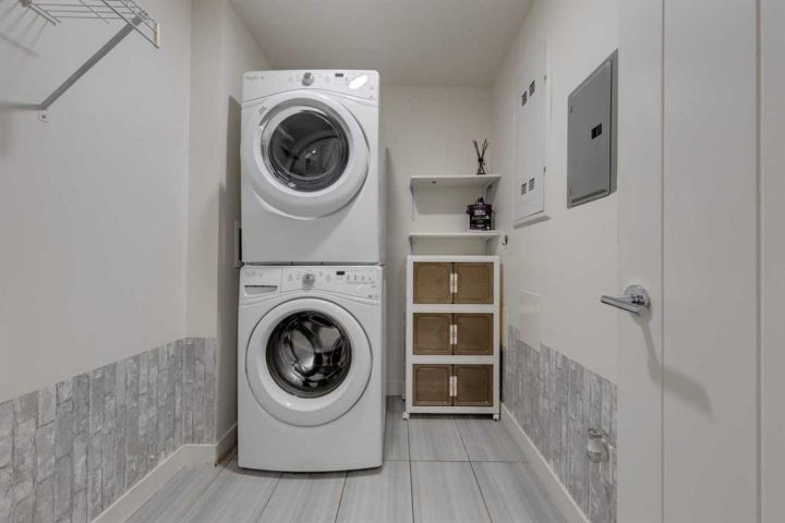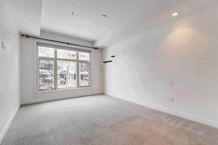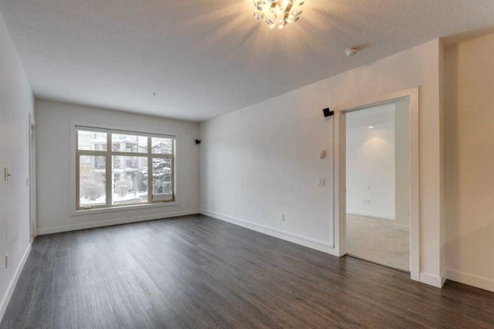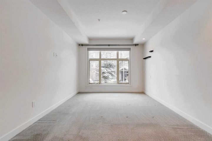 Welcome to Valmont at Aspen Stone—this main floor unit is where lifestyle, location, and luxury converge. Located directly across the street from from Guardian Angel School, and within a 10-minute radius of three of Calgary’s most esteemed private schools. Transit is effortless with four bus stops within a 5-minute walk and the 69th Street SW LRT station less than a 5 minutes drive away. For weekend escapes, Stoney Trail is only 7 minutes drive away, connecting you quickly to major highways. Leisure options abound with the nearest golf club just 10 minutes away, numerous parks and pathways for nature walks, and local gems like Blush Lane Organic Market and the famous Ladybug Café French bistro—just a 5-minute walk from your door. This beautifully appointed 2-bedroom, 2-bathroom condo offers 933 sq ft of thoughtfully designed living space. The kitchen is a true showpiece with waterfall granite countertops, stainless steel appliances, pendant lighting, and full-height cabinetry. The open-concept layout flows into the dining and living areas, enhanced by motorized remote-control sheer blinds, a Bose home theatre system, and a portable air conditioner included for year-round comfort. Large windows provide serene garden views, while the privacy-focused floorplan places bedrooms on opposite sides of the unit. The primary suite features a walk-through closet, blackout blinds, and a spa-inspired ensuite with soaker tub and tiled glass shower. A spacious in-suite laundry room adds convenience and storage. Additional perks include a heated underground parking stall located near the elevator, a separate storage locker, and a quiet location within the building. Residents enjoy fitness facilities, guest suites, a car wash, and ample visitor parking—all in a well-maintained, pet-friendly community. THIS UNIT OFFERS A RARE BLEND OF LUXURY FINISHES, UNBEATABLE LOCATION, AND EVERYDAY CONVENIENCE IN ASPEN WOODS —PERFECT FOR FAMILIES, PROFESSIONALS, OR INVESTORS.