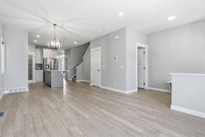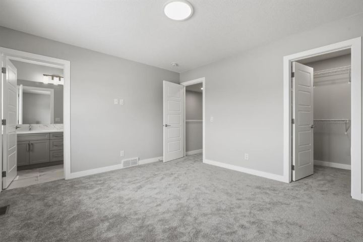 Main Floor Office • Oversized Double Garage (Bring Your Trucks! 8 Feet Tall Door) • Upper Loft • Side Entrance Basement • Triple-Pane Windows! Welcome to your brand new 2025 home in the award-winning community of Coopers Crossing Airdrie. Sitting proudly on a conventional lot (a.k.a. more yard to actually use), this home is thoughtfully crafted for real life—working, relaxing, entertaining. Step inside to an open-concept main floor boasting 9’ ceilings, sunshine for days, and ultra-efficient triple-pane windows to keep you cozy in winter and cool during "why is it so hot?" season. Need a home office or private guest hideaway? The main-level flex room has you covered—conveniently located next to a sleek bathroom with a floating vanity that practically winks at you. Head upstairs to discover the bonus loft—perfect for movie nights, homework zones, or staging epic pillow forts. Three generously sized bedrooms await, including a primary suite designed for maximum relaxation with a walk-in closet and a spa-inspired ensuite where you can pretend you’re at a resort. Laundry is right down the hall, so no carrying baskets up and down stairs! The unfinished basement (with 9’ ceilings, painted concrete floors, and a separate side entrance) is a blank canvas. Gym? Secret lair? You decide. Outside, the star of the show: an oversized double detached garage—big enough for trucks, tools, toys, and possibly your ambitions. The conventional lot also gives you plenty of backyard space for BBQs, gardening, or letting the dog live its best life. All of this is just a short stroll from St. Veronica and Northcott Prairie schools, scenic parks, walking paths, and the Coopers Town Promenade—home to Sobeys, cafés, restaurants, and everything you forgot you needed until five minutes ago. Turn the key, settle in, and start your next chapter in Coopers Crossing—your future self will thank you.