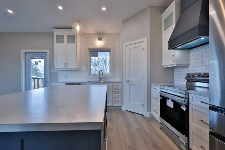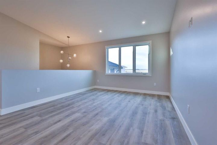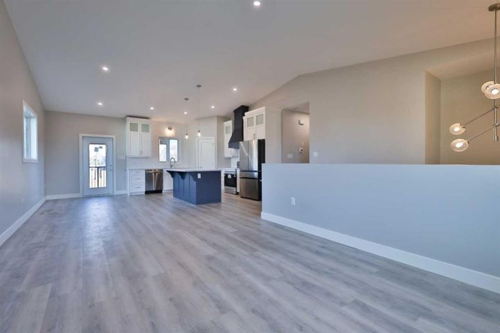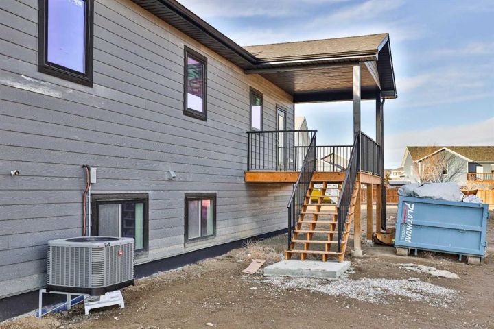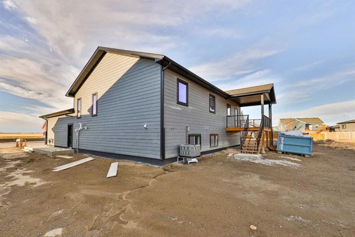 Welcome to this stunning new-build family home in the heart of Picture Butte, thoughtfully constructed by Horizon Homes—a builder known for quality craftsmanship and homes designed with real families in mind. This beautifully finished property offers five bedrooms and three full bathrooms, with a highly functional layout that includes three bedrooms on the main level, highlighted by a spacious primary retreat complete with a luxurious ensuite featuring a double vanity and walk-in shower. The chef-inspired kitchen is truly the heart of the home, showcasing custom cabinetry, a large island, a generous pantry, and an abundance of natural light that flows effortlessly through the open-concept design. Comfort and convenience are elevated with central air conditioning, a garage heater, a massive double attached garage, and a huge laundry room!! Downstairs, enjoy a spacious family room perfect for entertaining or relaxing, along with an oversized basement storage room to keep everything organized! Step outside to the back deck and take in peaceful views of the expansive green space this home backs onto—ideal for families who value privacy and outdoor living. This exceptional home checks every box for effortless family living—call your REALTOR® today and book your private showing!