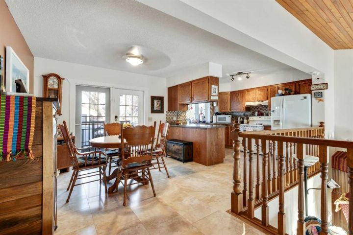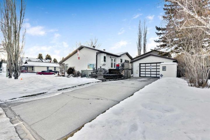 LOCATION, LOCATION, LOCATION! Situated on one of the most sought-after streets in the SW, this beautifully maintained 4-bedroom family home offers the perfect blend of comfort, charm, and convenience. Enjoy sunny mornings on the south-facing front patio, an ideal spot to relax with coffee or chat with neighbors. Inside, the main level welcomes you with a warm family room featuring vaulted ceilings and a cozy gas fireplace—a perfect place to showcase your holiday décor. Upstairs, the bright dining room flows seamlessly into the kitchen, making family meals and entertaining a breeze. Step right out onto the spacious rear deck, offering ample room for outdoor seating and BBQs (there is a gas line) with a 2-tiered deck. The primary bedroom features two large closets and a beautifully updated ensuite with a full tile walk-in shower and custom cabinetry by Wegener Homes. Two additional bedrooms and a full bathroom complete this level. The lower level is filled with natural light thanks to full-size windows. An oversized family room provides a comfortable space for movie nights or game time. This level also includes a fourth bedroom, full bathroom, private laundry room, mechanical room and access to a partial basement—perfect for seasonal storage. Outside, you’ll appreciate the extended driveway leading to a heated oversized single (20'x20') detached garage. Additional storage is abundant with a shed and under-deck space. The maintenance-free fence on the west side, installed by Wegener Homes (2023), adds both privacy and polish. Other updates include: Metal roof (2013), Windows (2013), Interior doors (2013), Hot Water Tank (2013), Furnace (2013), Vacuflo with kitchen toe-kick & 2 hoses (2013), Gutter guards, Exterior professionally re-stained (2022) , New Ensuite toilet (2025). Just one block away, access the Happy Trails pathway system, which leads you to the Highwood River, forested paths, George Lane Park, and onward to downtown. With year-round community events—including the Hot Air Balloon Festival, our Christmas & Little Britches parades, Car Shows, and weekly farmers’ markets in the summer —plus a nearby Elementary school and the High River Hospital, this location offers an unbeatable blend of convenience and small-town charm. This is your chance to own a home in one of High River’s most desirable neighborhoods!