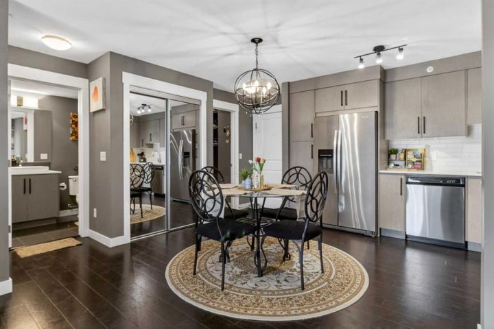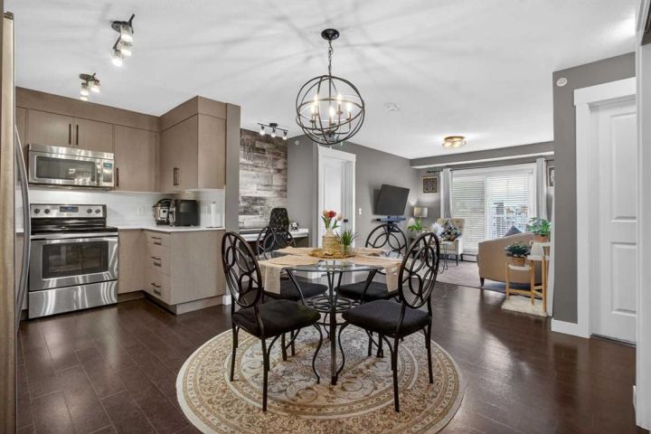 Some homes simply resonate the moment you step inside. This thoughtfully curated 2 – bedroom, 2–bathroom top–floor unit in Skyview Ranch blends style and substance effortlessly, with every room crafted for comfort, natural light, and connection. Morning sunshine streams through the patio doors, bathing the open-concept living area in a gentle glow. From the living room, sliding glass doors usher you onto a generous balcony overlooking the mountains, where you can savor outdoor meals all summer long. The spacious kitchen, framed with full-height cabinetry and refined finishes, feels both grounded and welcoming, including quartz countertops, stainless steel appliances, in-suite laundry, cork flooring, and carpet. A modern light fixture anchors the dining area, perfectly centering your dining table. A built-in desk area is nestled between the dining and living rooms, offering a convenient place for remote work or school assignments. Both bedrooms are ample and finished with luxurious carpeting. The primary bedroom boasts a walk-through closet that opens into a private 4-piece ensuite with a tub/shower combo. The second large bedroom on the far side of the unit is served by an adjacent 4-piece bath. The in-suite laundry is a welcome convenience and provides sufficient storage. This condo also includes the convenience of a titled underground parking stall, along with an additional storage locker located in front of the stall, perfect for seasonal items. As a resident of Skyview Ranch, you’ll enjoy an unbeatable lifestyle with access to schools, shopping, restaurants, parks, and excellent transportation routes, making commuting easy. With quick access to Stoney Trail, Deerfoot Trail, CrossIron Mills, Amazon shipping depot, and The Airport. You’ll be well-connected to go anywhere you want to explore. Schedule your showing today!