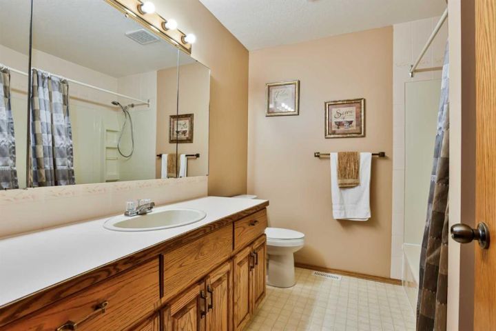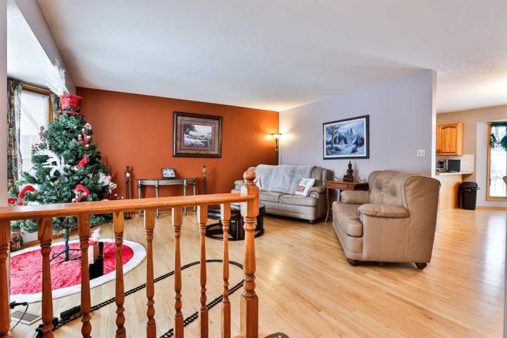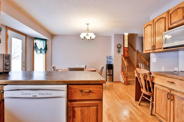 Well-maintained, one-owner home in a quiet cul-de-sac — ideal for families or professionals. This 4-bedroom, 3-bathroom home offers a thoughtful and practical layout with hardwood floors on the main and upper levels and a comfortable flow throughout. The home features an oversized garage with a generous driveway, along with a separate entry from the garage to the third level, providing extra flexibility for daily living, storage, or home office use. Outside, enjoy a fully fenced yard with a powered tool shed, plus a gas line ready for BBQ convenience. Upstairs includes three bedrooms, highlighted by the primary bedroom with a walk-in closet and private ensuite. The additional bedroom and full bathroom on the lower level offer great options for guests, teenagers, or work-from-home needs. Central air conditioning and a water softener add everyday comfort and efficiency. Set in a quiet, established cul-de-sac and clearly well cared for throughout, this home offers comfortable, functional living in a peaceful location.