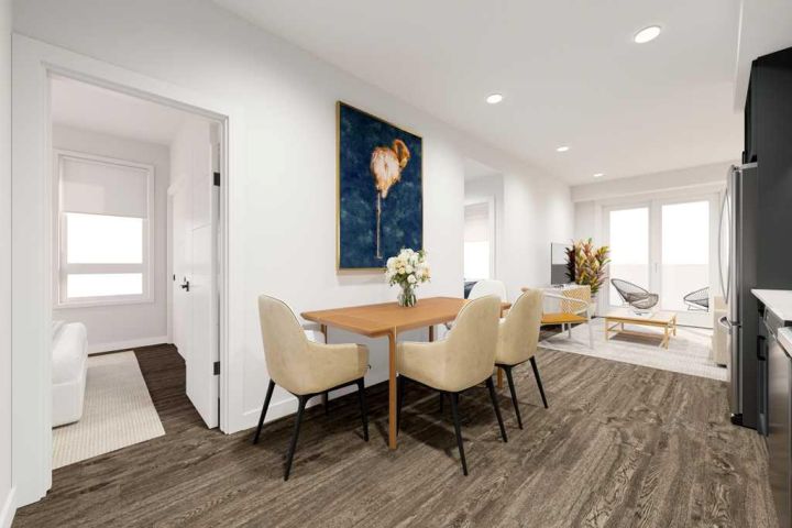 THIS TOP-FLOOR, CORNER RESIDENCE KNOWS EXACTLY WHAT IT IS. Bright, well-composed, and unapologetically functional, this sixth-floor two-bedroom home at Autumn in University District is designed for people who notice when spaces feel right—and trust that instinct. Corner positioning changes everything. WINDOWS ON TWO SIDES pull light in from multiple angles, giving the bedrooms, living and dining areas an easy openness that feels natural from the moment you step inside. The kitchen holds its ground as the anchor of the home: FULL-HEIGHT CABINETRY that actually earns its keep, QUARTZ COUNTERS that can handle real life, and under-cabinet lighting that makes both weeknight dinners and late-night snacks feel considered. The open layout doesn’t dictate how you live—it gives you room to decide. Both bedrooms are placed with intention and balance, flanking a CENTRALLY LOCATED BATHROOM that keeps the layout efficient and flexible. Neither room is treated as secondary, which makes the plan equally comfortable for roommates, guests, or a work-from-home setup that doesn’t borrow space from where you sleep. Being on the top floor adds a layer you don’t get elsewhere in the building. 10 FT CEILINGS EXCLUSIVE TO THIS LEVEL create additional volume and breathing room, while the PRIVATE BALCONY becomes a natural extension of the living space. Morning coffee lands better up here. So does a quiet reset at the end of the day. Beyond your front door, the building works just as hard as the home. A FITNESS CENTRE, co-work and lounge spaces, SECURE BIKE STORAGE, and an OWNER’S ROOFTOP TERRACE mean your lifestyle expands without expanding your maintenance list. TITLED UNDERGROUND PARKING and a DEDICATED STORAGE LOCKER keep the logistics clean and uncomplicated. SET IN THE HEART OF UNIVERSITY DISTRICT, this is walk-first living done properly. Groceries, coffee, fitness, green space, dining, and major employment centres are all close enough to make the car optional and convenience non-negotiable. A layout and location that continue to perform whether you live here now or hold it for the long term. Anticipated completion is Spring/Summer 2026, offering the opportunity to secure a TOP-FLOOR, CORNER HOME with light, character, and long-term relevance—before possession even begins.