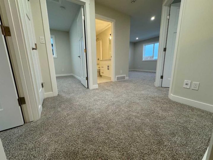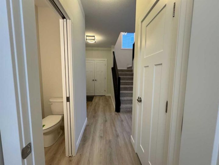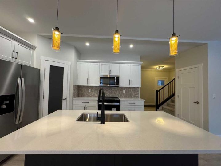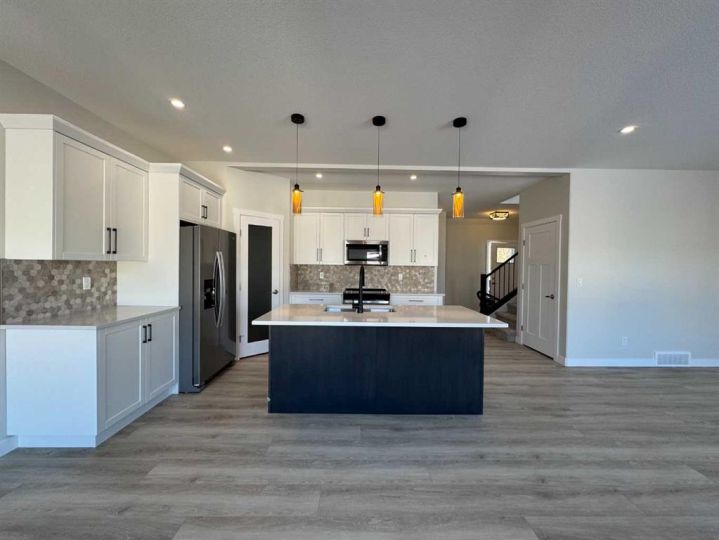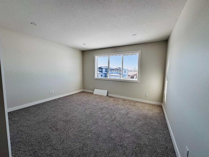 THIS MAGNIFICENT NEW BUILD TWO STOREY WITH AN UPPER LEVEL BONUS ROOM IS SITUATED ON A QUIET STREET IN THE MUCH SOUGHT AFTER AREA OF EVERGREEN, a subdivision that is designed for peace and tranquility with a water feature and extensive green space for trails, biking and walking! Enter this stunning home to 9 ft Main Floor Ceilings with Luxury Vinyl Plank Flooring flowing through to the EAST FACING OPEN PLAN LIVING/DINING/KITCHEN revealing a gorgeous Living Room Fireplace with a Floor to Ceiling Dark Grey Stone Surround! A Chef's Dream Kitchen with White Cabinetry/Soft Close Drawers/Quartz Countertops/Center Island with Extended Breakfast Bar/Pantry and All Stainless Steel Appliances included (Fridge with Water)! The Kitchen overlooks the good sized Dining Area with garden door access to a 14' x 10' East Facing Deck with metal railing surround! Completing the Main Level we have the Laundry Room with garage access and a convenient 2 Pce Washroom. Proceeding to the Upper Level there is the BONUS ROOM, a spacious Primary Bedroom with an Oversized Walk in Closet (12'11" x 5'1") and a 3 Pce Ensuite with Dual Sinks, Quartz Countertops, Tile Floor and 5 Ft Shower with Full Tile Surround! Next the Two Secondary Bedrooms and the Main 4 Pce Bath with Quartz Countertop and Tile Floor! The basement is open for development with "roughed in" infloor heat! POSSESSION IS IMMEDIATE!