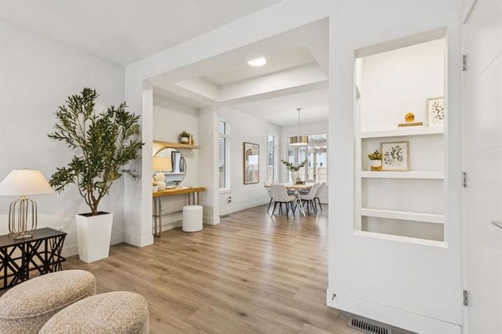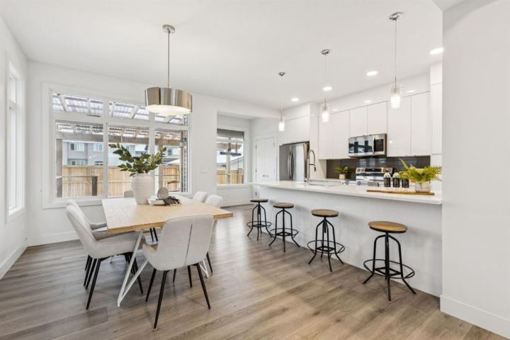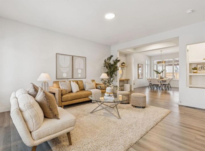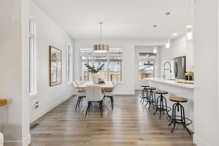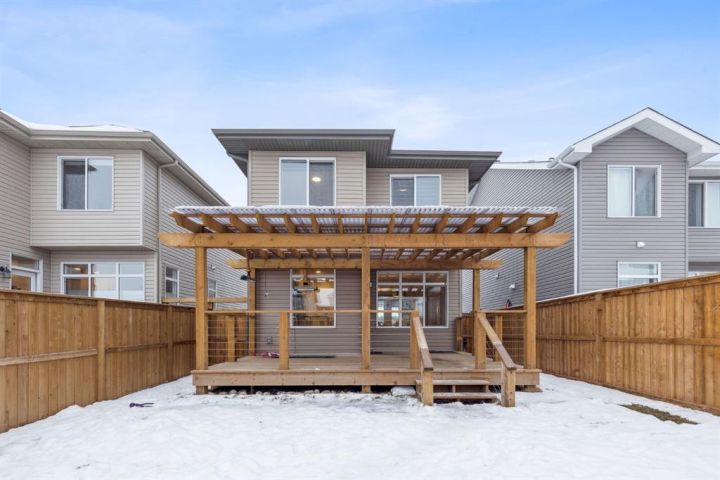 Open House Saturday from 11am - 1pm | Welcome to 584 River Avenue home offering over 2,200 sq. ft. of comfortable living space, UPGRADES, and a location that truly can’t be beat. Walk to the Bow River pathways, SLS Centre, downtown Cochrane, the off-leash dog park, golf course, and multiple parks. Everything you need is just minutes away. The main level offers an OPEN CONCEPT living and dining area, LARGE WINDOWS for an abundance of that natural light and a WHITE KITCHEN. The kitchen includes STAINLESS STEEL appliances, QUARTZ COUNTERS and direct access to the spacious deck/pergola that spans the back of the home in the backyard. With an added heater perfect for seamless indoor/outdoor entertaining. The second floor features three generous bedrooms, including a spacious primary. Enjoy a large WALK IN closet and a 5-piece ENSUITE with dual sinks, SOAKER TUB, and separate shower. Two additional bedrooms, a full 4-piece bathroom, and a conveniently located LAUNDRY room complete the upper level. The fully finished basement includes its own private side entrance, offering great potential for multi-generational living, guests, or a rental. The space features a full bathroom, apartment-style laundry, cabinetry, and a wet bar. Two storage rooms add even more practicality. This home is truly a place to call home as its close to everything in town!