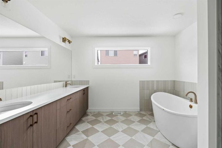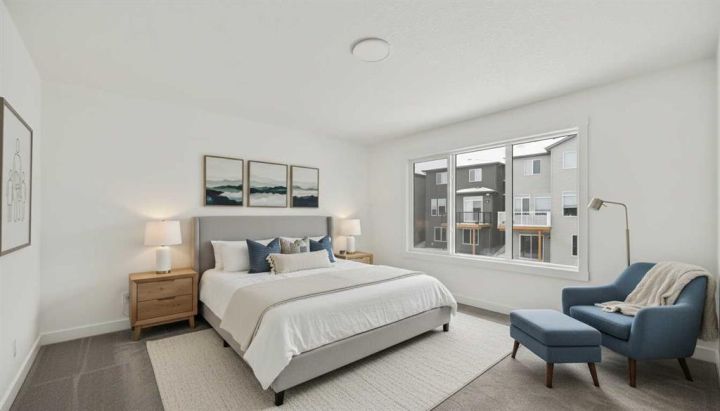 The Columbia 26 is a brand-new home built by Brookfield Residential, ready for immediate possession! Situated on an oversized conventional pie lot (not zero lot) with 4 bedrooms on the upper level and featuring nearly 2,600 square feet of developed living space + a full basement with private side entrance. Featuring 2 living areas, a home office space, 4 bedrooms above grade and 2.5 bathrooms, this home offers the perfect space for a large family! Upon entry a grand foyer provides plenty of space with sight lines from the entryway to the back of the home and main living area. Walls of windows across the back of the home allow natural light to fill the space all day long. The home boasts a central gourmet kitchen with an expansive pantry that has direct access to the mudroom for everyday convenience. The kitchen is complete with a chimney hood fan, built-in wall oven & microwave and a gas cooktop. The kitchen is complete with a large central island and open to the main living and dining space - making it the perfect place to host guests. Warm wood tones and a timeless design palette flow effortlessly throughout the home - creating a space that is beautiful today and will offer exceptional resale value long term. The main level is complete with a private flex space, perfect for a home office with double doors providing added privacy. A central gas fireplace on the main level is the perfect addition for cool winter nights. The main level is complete with 3 closets, an expansive mud room and 2 pc powder room. The upper level has a central bonus room that separates the primary suite from the other 3 bedrooms. The primary suite overlooks the backyard and has a large ensuite with dual sinks, a walk-in shower and soaker tub, in addition to the oversized walk-in closet. Three more large bedrooms, with walk-in closets and double closets, provide ample space for children and a full 5pc bathroom with double sinks and laundry room complete the upper level. The undeveloped basement includes a private side entrance and offers endless possibilities with rough-ins already in place! Located in the new community of Livingston, this home includes Alberta New Home Warranty as well as the builder's warranty, allowing you to purchase this brand-new home with peace of mind.