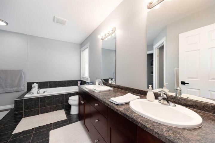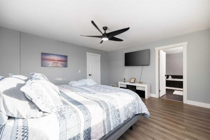Beautifully renovated and truly turn-key, this updated 2-storey home offers 4 bedrooms with a functional family-friendly layout—three bedrooms upstairs and one in the basement. Modern finishes, thoughtful upgrades, and exceptional indoor–outdoor living make this home stand out. Major exterior improvements include updated siding, shingles, and a large living room window (2018), along with upgraded attic insulation to R-60 for improved energy efficiency. Both the front and rear feature low-maintenance composite decking, with the rear deck fully covered and equipped with natural gas quick-connects for a BBQ and firepit. A hot tub (2021) completes the private outdoor retreat. Inside, the main and second floors showcase new LED lighting and stylish vinyl plank flooring. The main level has been fully upgraded with a renovated kitchen, updated flooring and moldings, and a cozy natural gas fireplace. The basement also features a newer natural gas fireplace, adding warmth and comfort. The 16’ x 24’ detached garage, new siding in 2018, is heated with a natural gas infrared heater and has internet connectivity—currently set up as a golf simulator room, offering excellent versatility. Additional features include new blackout window coverings throughout and a hot water tank and furnace believed to have been replaced within the last 5–8 years (age not verified).