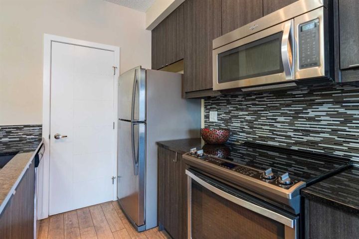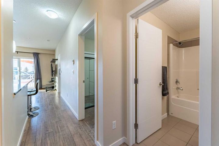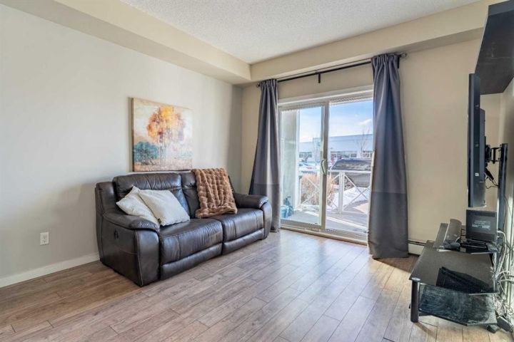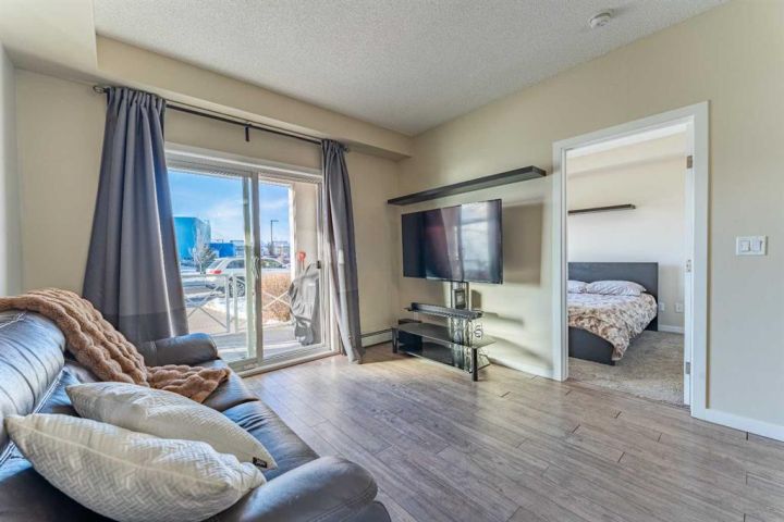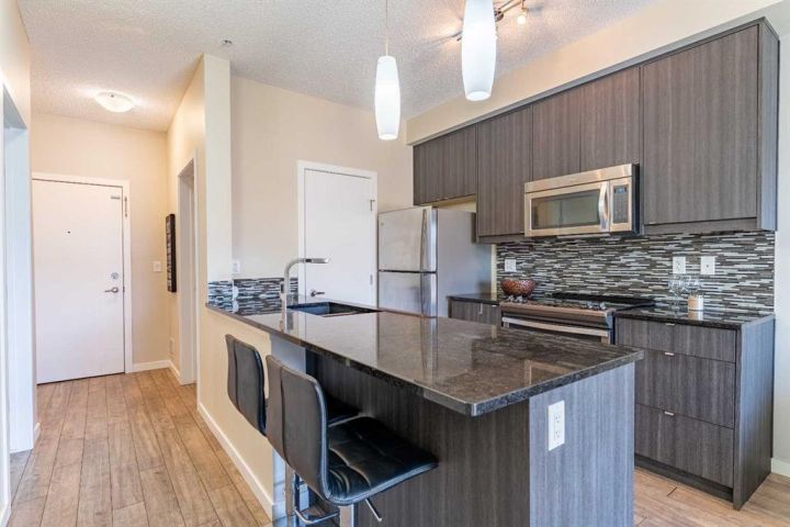 Experience the ultimate lakeside lifestyle in this stunning 2-bedroom, 1-bathroom main-floor condo located in the highly sought-after Ebony Apartments in Mahogany. This bright and functional residence is an exceptional opportunity for first-time buyers, downsizers, or investors looking for a home that perfectly balances comfort, value, and convenience. As you step inside, you are greeted by an inviting open-concept floor plan elevated by soaring 9-foot ceilings and flooded with natural light, creating a spacious atmosphere that is perfect for entertaining. The modern chef-inspired kitchen serves as the heart of the home, featuring full-height cabinetry, sleek granite countertops, and a stylish tile backsplash. The extended kitchen island offers additional seating and is highlighted by chic pendant lighting, all complemented by a full suite of premium stainless steel appliances. The airy living room flows seamlessly to a generous covered patio, which comes equipped with a BBQ gas hook-up, making it an ideal spot for year-round outdoor relaxation. Both the primary and secondary bedrooms provide flexible space for guests or a home office and share a well-appointed 4-piece bathroom. For added convenience, the unit includes an in-suite laundry room, dedicated storage space, and a titled parking stall, with plenty of visitor parking just steps from your door. Residents of Ebony enjoy exclusive access to incredible on-site amenities, including a private fitness center, bike storage, and a children’s playground. Living in Mahogany means more than just a beautiful home; it grants you unparalleled access to Calgary’s premier lake community where you can enjoy swimming, boating, and fishing. You are perfectly positioned just moments away from the Mahogany Village Market, offering a vibrant array of shopping, dining, and daily essentials. With quick access to transit and Stoney Trail, this low-maintenance home provides a seamless connection to the rest of the city while maintaining a tranquil resort-style feel. Don’t miss your chance to own in one of Calgary’s most desirable neighborhoods—book your private showing today and start living the lake life you’ve always dreamed of.
