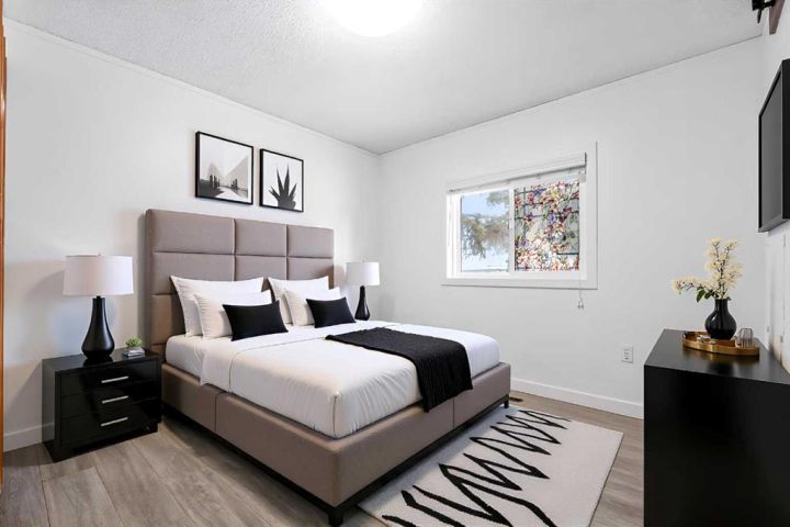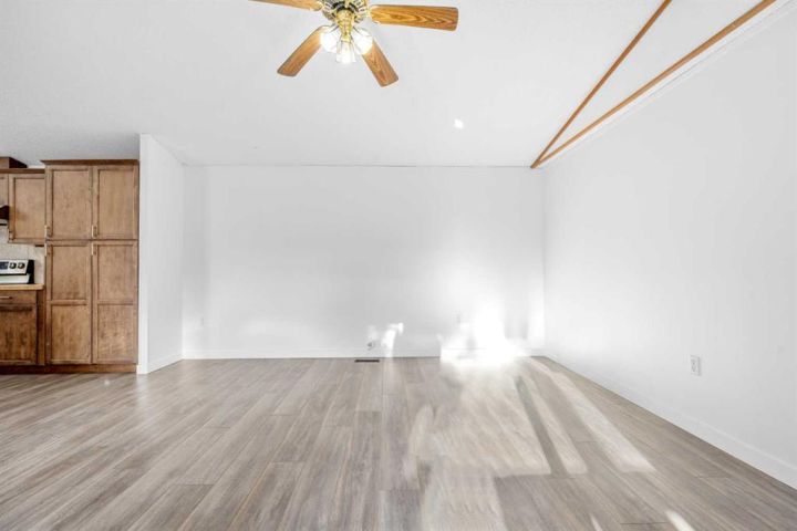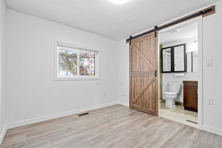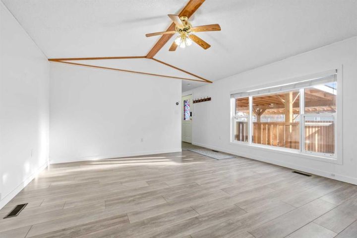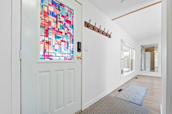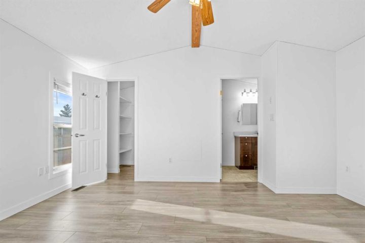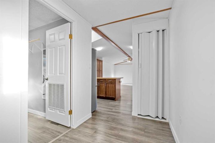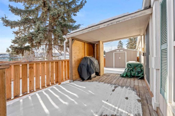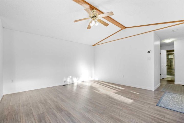 Welcome to Greenwood Village. This 3 bed, 2 bath, 1,221 sf mobile home is truly move-in ready. All upgrades and updates have been done and you will love the bright, open floorplan. It has been meticulously maintained, presenting in excellent condition. Upon arrival, you will notice the double carport, providing parking for up to four vehicles. The spacious, fully fenced yard is adjacent to a playground, one of several within Greenwood Village. The well-appointed entry leads to two bedrooms and a bathroom at the front of the home, a generous living room with vaulted, beamed ceiling, large windows, and laminate flooring throughout. The kitchen benefits from a skylight that fills the space with natural light, ample cabinetry, a sizable island offering extra storage, and patio doors opening onto a large deck. The primary bedroom includes a four-piece ensuite, walk-in closet, and accommodates a king-size bed. The additional bedrooms are also spacious, and the front bedroom offers a Jack-and-Jill three-piece ensuite. A separate laundry room with a sink adds further convenience. Recent improvements include a new Furnace and Central Air Conditioning (Fall 2023), a Stainless Steel appliance package (Fall 2022) featuring a double-door refrigerator with bottom-mounted freezer, water, and ice dispenser, as well as a newer hot water tank, Vacu-Flo system, and a recently constructed double carport. The kitchen patio doors lead to a substantial deck equipped with a Weber BBQ. The home is conveniently located minutes from Greenwich Village, renowned for its Farmers Market West, and provides easy access to Stoney Trail Ring Road for citywide travel and Highway 1 for trips to the mountains. The monthly lease fee of $1,375 covers water, sewer, garbage pickup, and snow removal. Greenwood Village offers a clubhouse with activities throughout the year and is serviced by Calgary Transit and a school bus route. Lease approval is required, and pets are permitted upon approval.