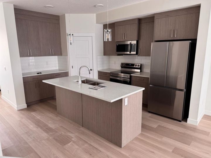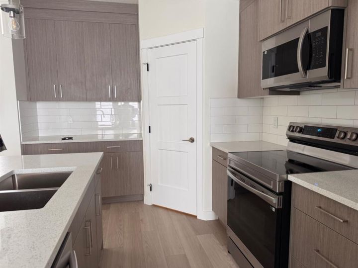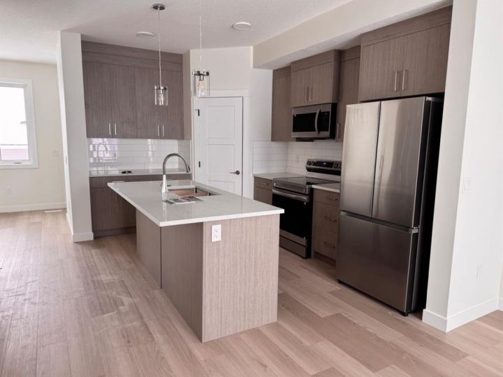 *OPEN HOUSE SAT & SUN 12–3* Builder incentive included: free basement development with purchase. Welcome to this brand new two storey duplex offering over 1,300 square feet of thoughtfully designed living space with 3 bedrooms and 2.5 bathrooms. With a fully developed basement included by the builder, this home delivers exceptional value right from day one. Built with modern finishes and a functional layout, it is well suited for first time buyers, families, or investors seeking long term value. The main floor features 9 foot ceilings and an open concept design filled with natural light. The kitchen is both stylish and practical, featuring quartz countertops in the kitchen and bathrooms, a large central island, and modern cabinetry. Durable vinyl plank flooring runs throughout the main level, while carpet adds comfort to the upper bedrooms. Upstairs, the primary bedroom includes a generous closet and a private 3 piece ensuite. Two additional bedrooms and a full bathroom complete the upper level, offering flexibility for family, guests, or a home office. A separate side entrance enhances functionality and adds versatility for the fully developed basement. Triple pane windows improve energy efficiency and year round comfort throughout the home. Outside, the property offers rear lane access and a detached double garage. Located close to parks, playgrounds, walking paths, schools, shopping, and major routes, this home delivers modern design, efficient use of space, and everyday convenience. Outside, the property offers rear lane access and a detached double garage. Located close to parks, playgrounds, walking paths, schools, shopping, and major routes, this home delivers modern design, efficient use of space, and everyday convenience.
