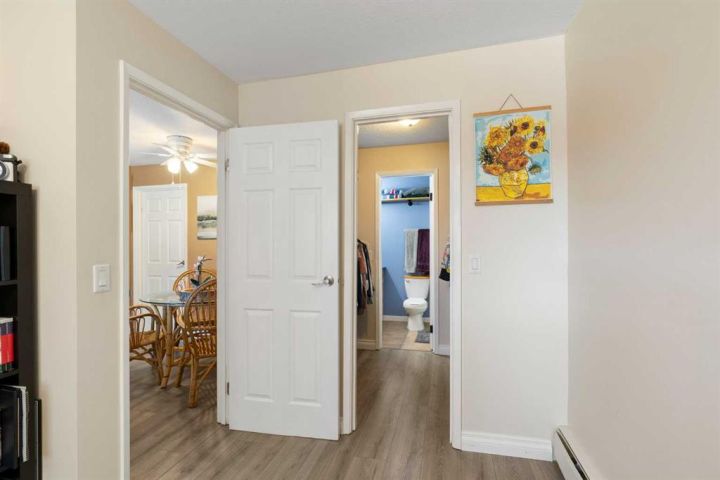This beautifully updated 2-bedroom, 2-bathroom main-floor unit shines with pride of ownership. From the moment you walk in, you’ll notice the thoughtful care and attention that has gone into maintaining this inviting home. The functional, spacious layout features two generous bedrooms, two full bathrooms, and an updated kitchen complete with quartz countertops and stainless/black appliances. The warm and welcoming living room includes a charming fireplace and opens onto a large patio overlooking the interior courtyard—the perfect setting for relaxing or entertaining with a peaceful view. Stylish vinyl plank flooring adds both durability and modern appeal. The primary bedroom offers a walk-through closet leading to a private en-suite, while the sizeable second bedroom sits conveniently near the second full bathroom. Additional highlights include in-suite laundry, extra storage, and one of the best locations in the complex. Residents also enjoy access to fantastic amenities: a well-equipped fitness centre, heated underground parking, and a separate assigned storage locker. With public transit just steps away and major shopping destinations close by, convenience truly is at your doorstep. Whether you're looking to stop renting or seeking a smart investment, this home is an excellent opportunity. Book your private showing today and experience the exceptional value for yourself!