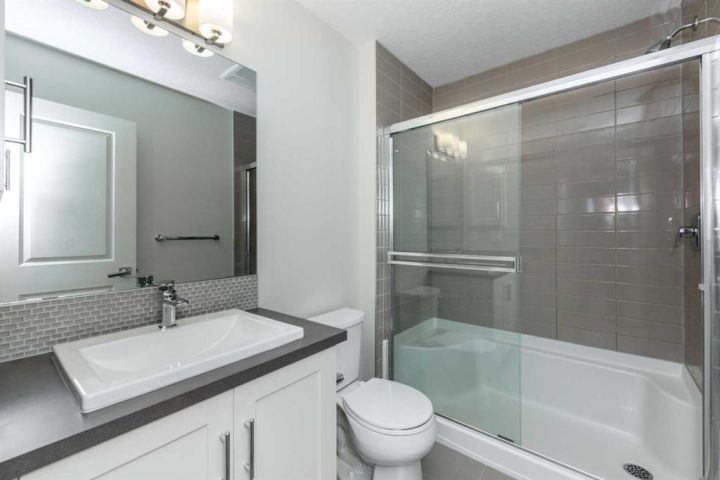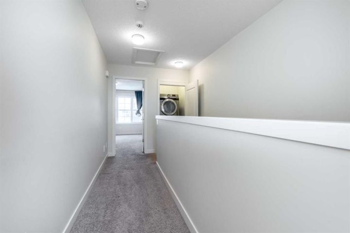Located in a family-friendly neighborhood, just steps from Blessed Marie-Rose School and minutes from Costco, T&T, H-Mart, and Beacon Hill Shopping Centre, this townhome features two spacious primary bedrooms, each with a private ensuite. Covering 1,145.71 sq. ft., the main floor offers separate living, dining, and kitchen areas. The kitchen boasts quartz countertops, stainless steel appliances, an electric stove, and a center island, while the dining room opens to a balcony. The east-facing living room is bright and welcoming, complemented by a 2-piece bathroom on the main level. Upstairs, both bedrooms include ensuites and generous closet space, with upper-level laundry adding convenience. The entry level features a double attached garage with ample storage. With its thoughtful layout, modern finishes, and prime location near schools, shopping, parks, and Stoney Trail, this move-in-ready home blends comfort, privacy, and everyday convenience.