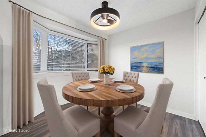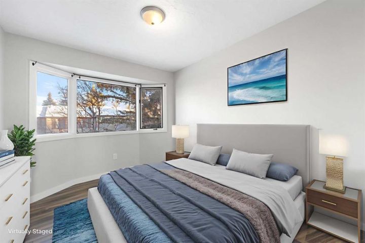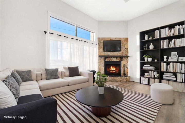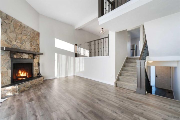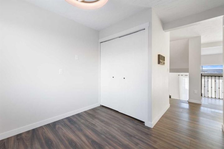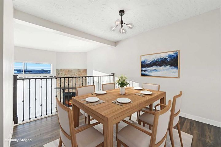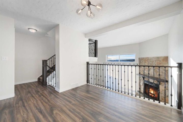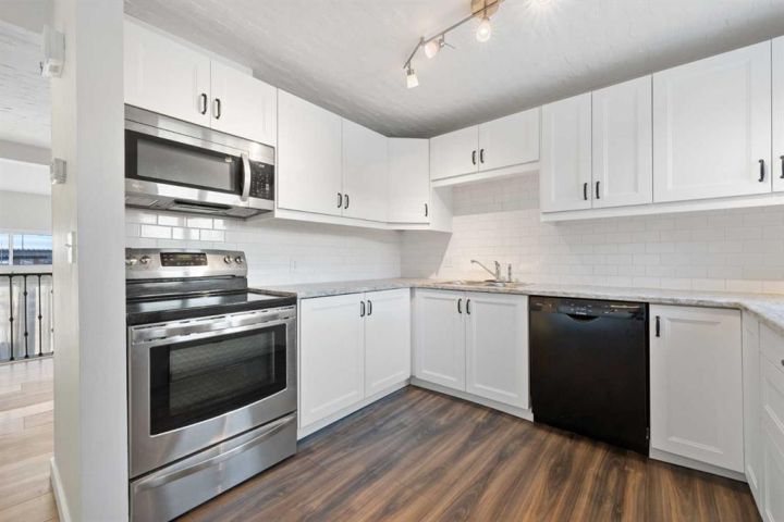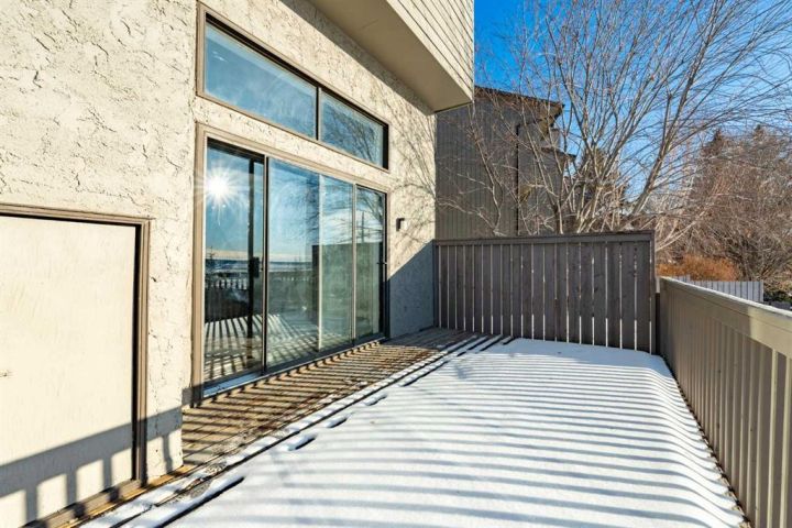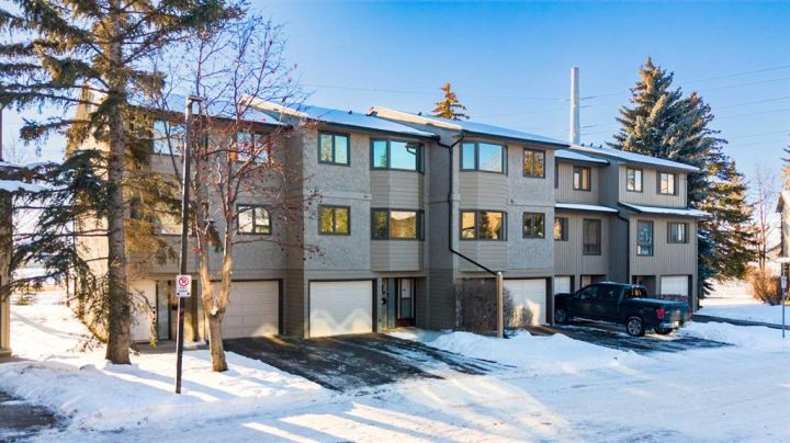 Step into this inviting 3-bedroom, 2.5-bathroom townhouse - an updated, light-filled end unit that offers both comfort and convenience. Thoughtfully improved over the years, this home features a single attached garage (with 30 amp, 240 volt plug!) plus a private driveway, making everyday life easier for households with multiple vehicles. Backing onto peaceful greenspace with a fully fenced yard, it’s the kind of property that feels tucked away while still being close to everything you need. Inside, the home welcomes you with a warm, neutral palette, durable vinyl plank flooring, and fresh carpeting. The front entry includes a coat closet and a handy half bath. Just a few steps up, the bright and airy living room showcases soaring ceilings, a charming wood-burning fireplace, and patio doors that open onto the south-facing deck overlooking the yard and greenspace beyond. The next level offers a spacious dining area with sightlines to the living room below, framed by the recently updated stair railing. The renovated kitchen is bright and efficient, complete with white soft-close cabinetry, newer stainless steel appliances, ample counter space, and a cozy breakfast nook. The laundry is conveniently located on this floor as well. Upstairs, you’ll find three comfortable bedrooms. The primary suite stands out with mountain views, a generous closet, and a beautifully updated 4-piece ensuite. The additional 4-piece bathroom has been recently updated and serves the remaining bedrooms. The lower level adds flexibility with a great gym or office space, along with plenty of storage and the furnace room. With low condo fees, recent upgrades, and a location close to shopping, transit, and Mount Royal University, this townhouse truly delivers value and lifestyle. Come see what makes this home such a wonderful find!