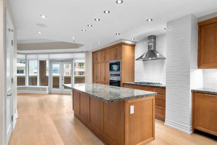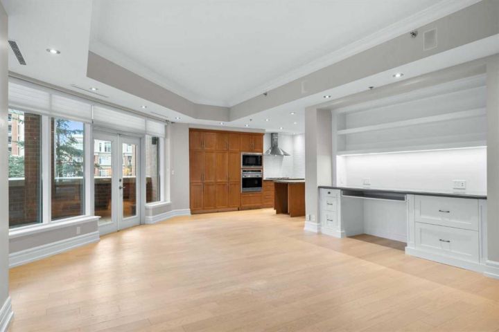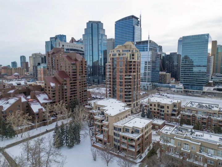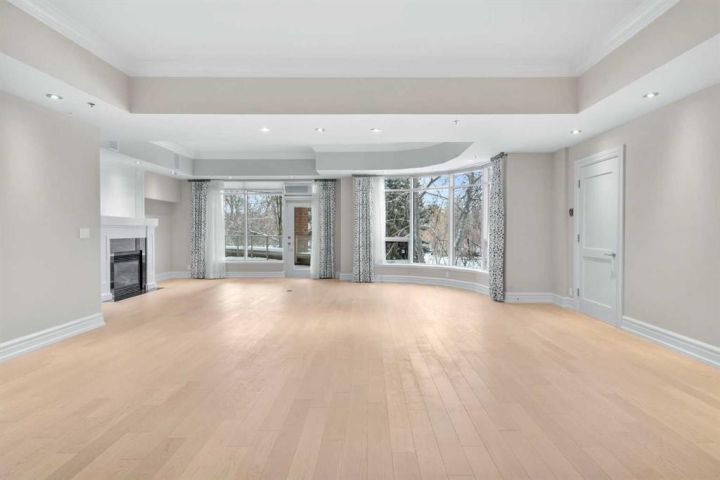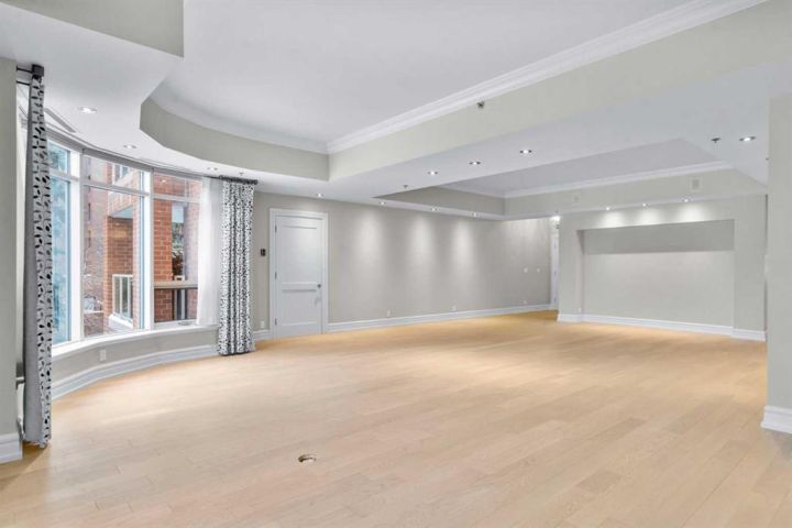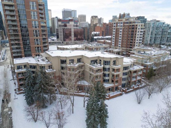 For those who value excellence, this distinctive executive residence in the Princeton Grand, a name synonymous with exclusivity, privacy, and luxury, is set amidst the most desirable residential enclave in Eau Claire. Your lifestyle will appreciate the opulent convenience of a private in-suite elevator coupled with exceptional amenities including 24 hour dedicated concierge, temperature controlled wine room with private storage lockers & tasting room, events area with full kitchen, TV’s and terrace, 2 private guest suites, a fully equipped fitness centre, yoga centre, steam room, dry sauna, showers, change room with lockers, full kitchen & bathroom, full service U/G car wash bay, bicycle storage, and a separate freight elevator. The beautifully manicured grounds create a private park-like setting, nestled along the south bank of the Bow River next to beautiful Prince's Island Park and incredible Pathway System! Walking distance to office towers, shopping, entertainment, restaurants, +15 skywalk system, transportation and the LRT, Peace Bridge, Kensington Shops and Calgary's vibrant City Center. Presenting a rare offering of 2892 sq.ft. of harmoniously appointed living space displaying the highest level of craftsmanship and luxurious interior tailoring, with pride of ownership complimenting the timeless prairie palette that flows seamlessly throughout the integrated floor plan that embraces the stunning backdrop of the Bow River. This exceptional luxury residence features a private elevator for the ultimate in convenience which opens to your stylish and spacious foyer, and then presents an exceptionally open entertaining floor plan, large floor to ceiling windows that provide exceptional natural light, with the open concept living/dining areas overlooking the private treed views to the Bow River. The master quarters overlooks the river and offers a large walk-in closet, relaxing, sensual 5 piece spa inspired ensuite with heated floors, a convenient office area and direct access to the expansive north terrace overlooking the Bow River and Prince's Island. The very private second bedroom is totally secluded from the living areas. The bright professional-grade gourmet kitchen was designed as the epicenter of the space with direct access to the south terrace, coupled with the north terrace can accommodate gatherings of all sizes. This peaceful and park-like setting offers two spectacular and spacious outdoor living spaces, a stunning 680 sq ft covered deck overlooking the mature trees and Bow River to the north, and a second sunny south facing covered balcony off the kitchen and family room, great for year round BBQs. An exceptional floor plan that's perfect for entertaining. Home includes built-in speaker system, vacuum system, a wine fridge, 1 gas fireplace, high ceilings, lge bright windows, 2 titled parking stalls and titled storage locker. Enjoy your refined lifestyle against a backdrop of luxury services, finishes and accoutrements in the Princeton Grand.