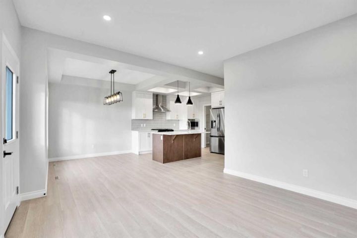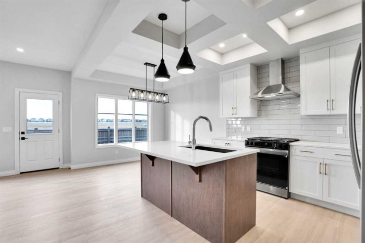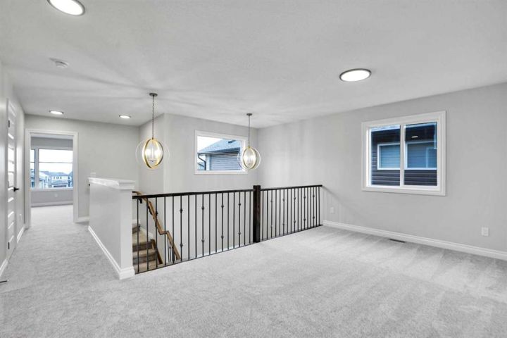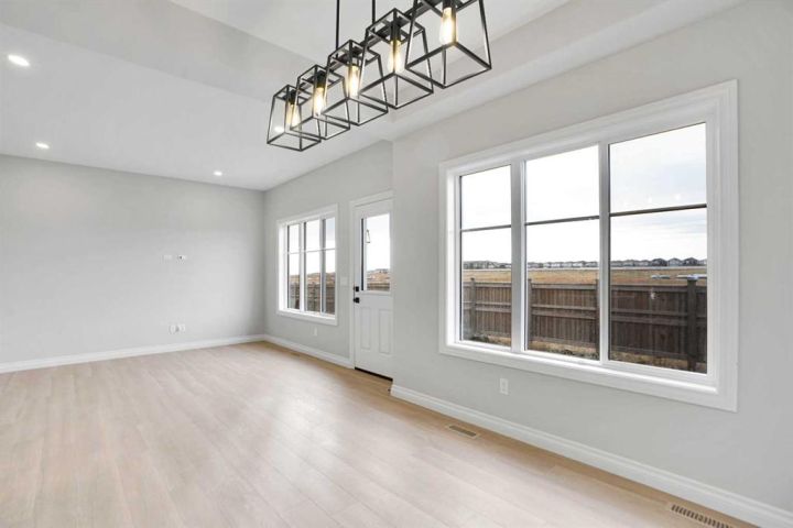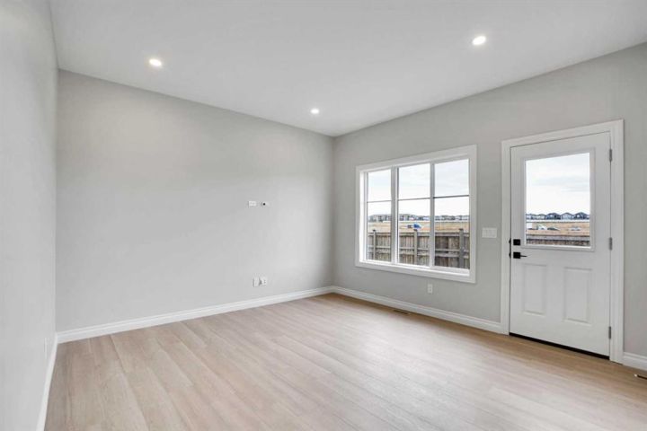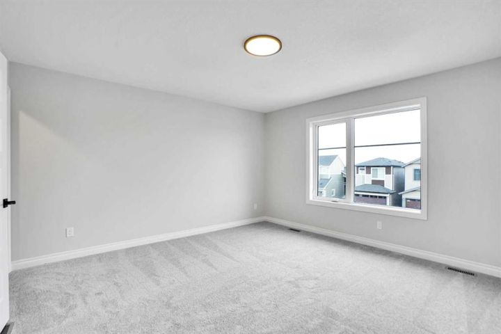 Welcome to this brand-new front-garage home in the Homestead community (NE), offering an extended driveway, a spacious garage accommodating up to three vehicles, and the rare benefit of no neighbors behind for added privacy. This bright and airy home features 6 bedrooms and 4 full bathrooms, including a main-floor bedroom with a full bath ideal for guests or multigenerational living. The kitchen is beautifully finished with quartz countertops, stainless steel appliances, a gas range with chimney hood, an oversized pantry, coffered ceilings, and a dining area with tray ceiling and extra windows that fill the space with natural light, while the open-to-below design enhances the sense of space. Upstairs includes a generous bonus room, well-sized secondary bedrooms—one oversized with a walk-in closet—and a luxurious primary bedroom with double-door entry, walk-in closet, and 5-piece ensuite. Large windows throughout, an east-facing front, and a west-facing backyard provide excellent natural light all day, and the 2-bedroom illegal basement suite with separate side entrance, living area, kitchen, full bathroom, and separate laundry makes this home perfect for extended family living.