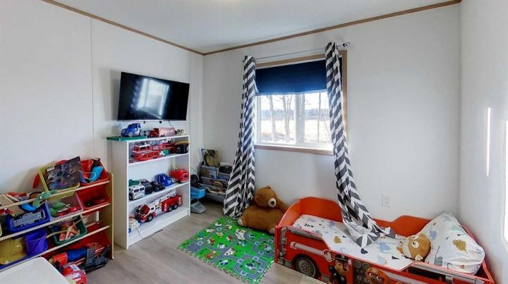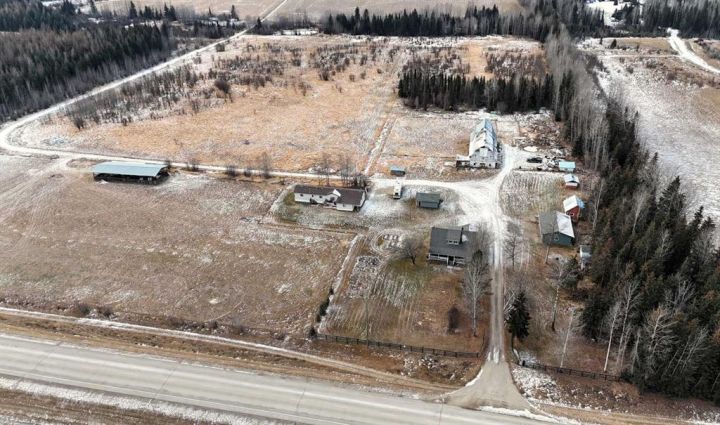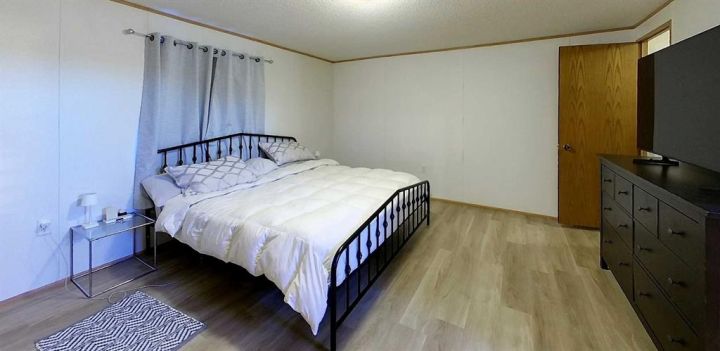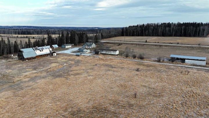 Rare opportunity to own two residences on 149.49 acres of productive, subdividable land just minutes from town, directly off pavement with no road bans. This exceptional property offers an ideal blend of comfortable living, income potential, & a fully developed livestock operation. The original 1.5-storey home features 4 bedrooms & 2 bathrooms, with two bedrooms on the main level & two upstairs. The main floor showcases hardwood flooring in living areas & tile in the kitchen and bathroom, complete with electric in-floor heat and hallway controls. The primary bedroom includes a sliding barn door leading to the bathroom. Upstairs offers newer glue-down LVP flooring in bedrooms and hallway, with a bathroom finished in linoleum. Major upgrades include an on-demand hot water system, forced-air furnace, updated electrical during the 2000 addition, and new shingles and siding (2019). Enjoy the covered front porch with swing, included with the home. A triple detached garage (built 2000) features in-floor heat, three automatic door openers, & an additional concrete pad with in-floor heat lines already installed, offering excellent expansion potential. The second residence is a 2006 modular home with its own power meter & natural gas service. It offers a spacious primary bedroom with ensuite, walk-in closet & jacuzzi tub, plus three additional bedrooms and a full bathroom. Updates include new LVP flooring throughout (2022), a new hot water tank (2022), new oven & range hood (2025), & a newer deck (2024). The mobile has consistently rented for $1,750/month since 2022 & is currently month-to-month, making it an excellent income property. Water infrastructure is extensive and well planned. The home well is approximately 120 ft deep with pressure tank & filtration, while the mobile is serviced by a separate 160 ft well with a 220V pump & VFD constant pressure controller. A seasonal 1.5” HDPE pipeline (nearly one mile) supplies water to 20 paddocks, with 11 strategically placed outlets. A heated livestock waterer, frost-free hydrant, & fenced-off natural water source further enhance the operation. The land consists of approximately 150 acres of tame pasture, high-tensile electric fencing, a one-mile alleyway for livestock rotation. A stream runs nearly year-round and is fenced to protect water quality. Additional features include an electric powered driveway gate with lighting, multiple outbuildings, a campground area with outhouse near the stream crossing, natural gas servicing the house, mobile, garage, & barn, both septic systems under 20 years old. This is a one-of-a-kind, multi-use property offering residential comfort, agricultural efficiency, rental income! Adjacent 1/4 also available for purchase.