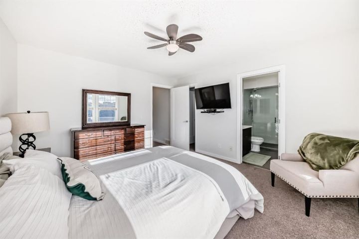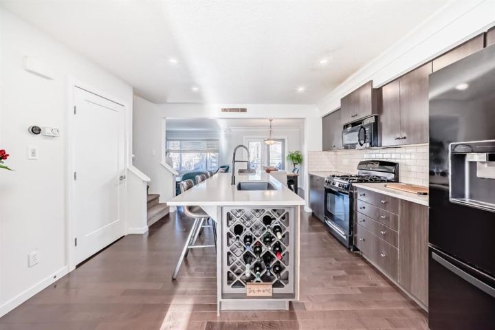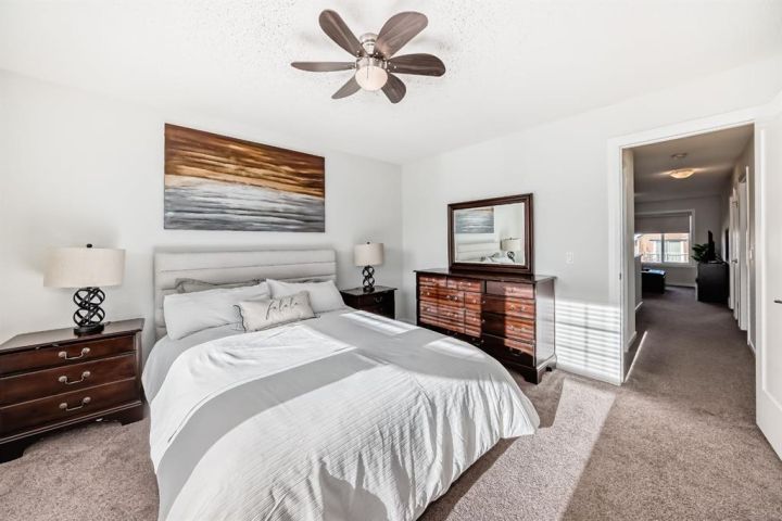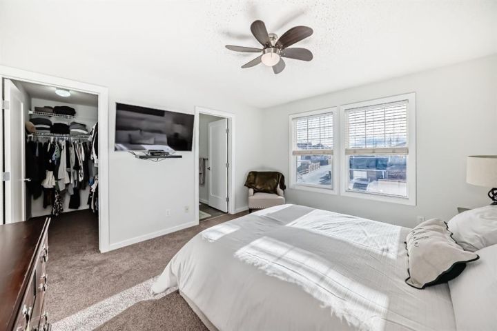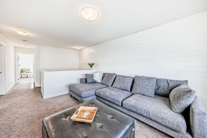 ** Open house Sunday 14th 3-5pm ** Welcome to your new home in Riversong! Offering 4 bedrooms and 1,936 sq ft of fully developed living space, this home blends comfort, style, and thoughtful upgrades throughout. Enjoy your south facing front porch, the perfect spot for morning coffee. Step inside to a bright, spacious kitchen with newer refrigerator, dishwasher, and a brand new microwave being installed this week. The Caesarstone countertops add a beautiful touch of quality to the space. The open concept living and dining areas are ideal for entertaining, with the dining room opening onto split level cedar decks and a large, sunny backyard. A convenient pantry and 2 piece powder room complete the main level. You’ll also notice newer carpets and professionally installed charming wood paneling up the staircase. Upstairs, the generous bonus room has large windows that flood the space with natural light. The primary suite is a true retreat, featuring a custom steam shower and a large walk in closet. Two additional good sized bedrooms and a 4 piece family bathroom complete this level. The partially finished basement offers incredible versatility. Currently set up as a home gym/Pilates studio with in floor heating, it’s perfect for year round comfort. You’ll also find the 4th bedroom, currently used as a cozy den with a fireplace, an inviting spot for winter evenings. The basement bathroom is drywalled, giving you a head start to completing. More additional recent upgrades include: Main floor crown moulding, Increased attic insulation, Newer washer and dryer, Updated plumbing, New blinds being installed this week and Air conditioning! This home has been lovingly maintained and thoughtfully improved, move in and enjoy! The sought after community of River Song has everything you need, including access to schools, close proximity to Spray Lakes Sports Centre, established walking paths and the Bow River! Book your showing toady!