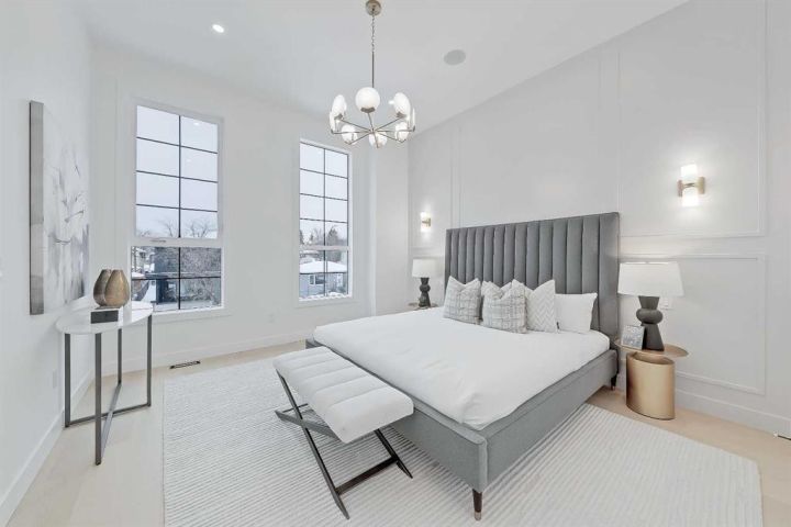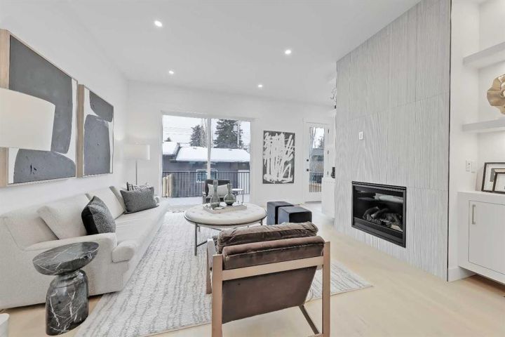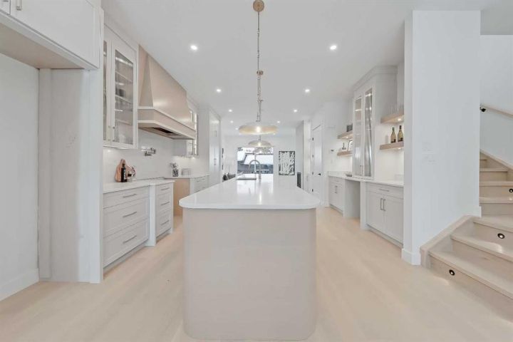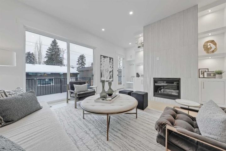 Clean lines, layered neutrals, and a magazine-ready kitchen come together in this modern PARKDALE INFILL home that feels calm the moment you step inside. The palette is soft and sophisticated, the hardware is warm, and every surface reads effortless. It’s designed for real life, with spaces that flow and finishes that stand out. You enter to a defined foyer with a closet for coats and sightlines across the wide plank engineered hardwood and high ceilings. Sightlines pull you forward to the heart of the home where the kitchen, dining, and living connect in one easy sweep. The kitchen is an entertainer’s dream: full-height cabinetry, a large quartz island with seating, warm fixtures, and integrated upgraded stainless steel appliance package & POT FILLER. The quartz features subtle golden veining for an elegant touch of luxury, and the slab backsplash maintains a sleek and easy-to-clean look. Across from the island, a generous dining area sits under designer lighting, making family dinners feel special even on a Tuesday. The living room is designed for a cozy and modern setup, oriented towards a fireplace feature with vertical wood clad tile that is sure to impress. Large windows draw in natural light and frame the backyard and vinyl deck. The rear mudroom with built-ins for shoes, backpacks, and sports gear makes daily life simple and organized, keeping the main level looking photo-ready. Upstairs is laid out for privacy and quiet retreats. The primary suite is a true haven, featuring a sky-high 11-ft ceiling, tall windows, a large walk-in closet, and a serene ensuite finished in warm stone tones. Enjoy a double vanity, walk-in shower w/steam, and elegant fixtures that match the home’s modern feel. Two additional bedrooms share a stylish full bath, and the laundry room is exactly where you want it. The lower level adds incredible flexibility w/ a LEGAL 2-BED SUITE (approved by the city), allowing you to use it as a mortgage helper or mother-in-law suite! Thoughtfully finished like the rest of the home, this space features a full kitchen with quartz counters and a stainless steel appliance package, a full 4-pc bathroom with a fully tiled tub/shower combo, and a dedicated laundry room. Location puts you in that sweet spot on Calgary’s northwest side with quick access to the BOW RIVER PATHWAY for runs and dog walks, and an easy connection to Edworthy Park. Groceries, coffee, and everyday errands are close at hand along 16 Ave and in Kensington, with more retail at Market Mall. Commuting is simple with nearby routes to downtown, and you’re minutes to Foothills and the Children’s Hospital, the University of Calgary, and the West Hillhurst Community Association for rinks, fitness, and programs. Well-regarded schools serve all ages, transit is convenient, and weekend life is dialed with parks, playgrounds, and local restaurants within a short drive. It’s understated luxury. Warm, modern finishes. Functional spaces that make daily life feel organized and elevated.