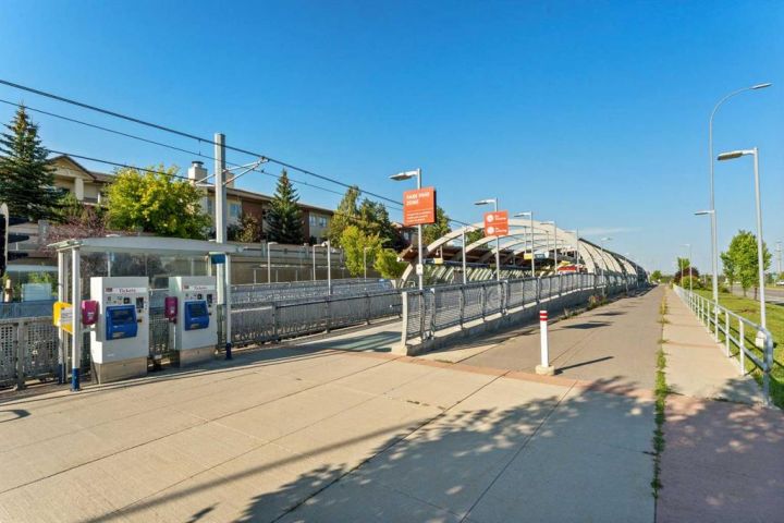 Beautiful Town Home in a great LOCATION in the desirable community of Signal Hill! Corner unit with greenery all around. Conveniently located within walking distance to Sirocco Train Station!! 2 story townhome featuring an open floor plan with Character, vaulted ceilings & tons of natural light. Main level has an open kitchen with raised eating area, dining room & living room with a cozy wood burning fireplace. Spacious main level Master bedroom with bright vaulted ceilings, walk-in closet & ensuite bath with an additional external door. Patio door leads to a covered patio perfect for summer entertaining. Upstairs offers a cozy bonus room/Den, second bedroom & a full bathroom with laundry. The oversized single attached garage gives you plenty of additional storage space. This is a well managed property with condo fees covering heat and water and also offers a club house for residents use for private events. Conveniently located walking distance to C-train station, shopping, schools, restaurants and professional services. A Great Place to call Home!! Check out our 3D VIRTUAL TOUR to ease your decision making process
