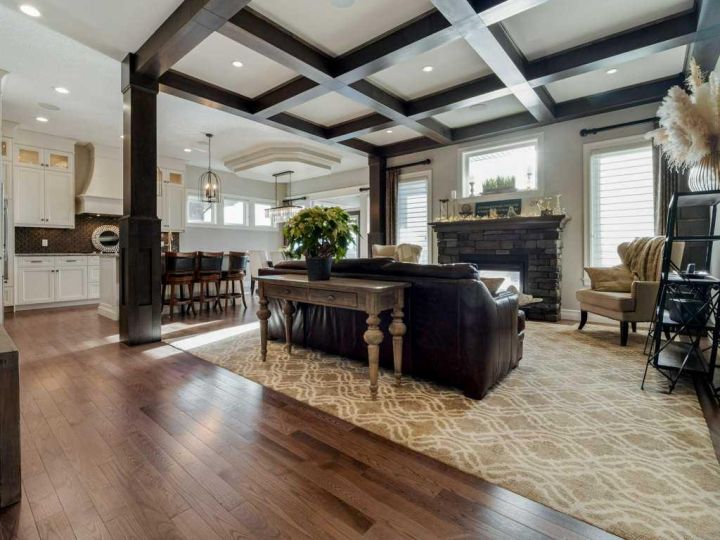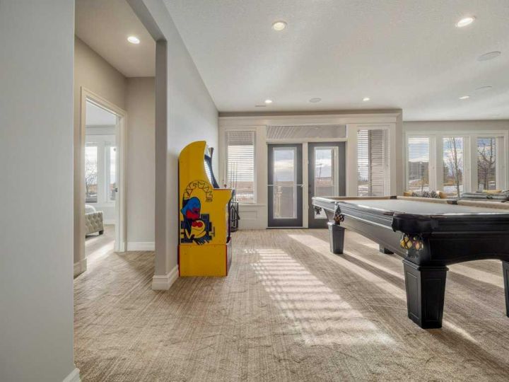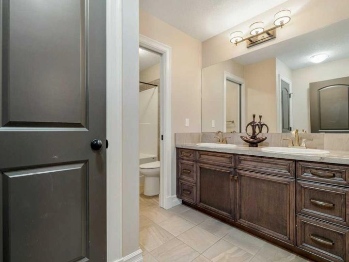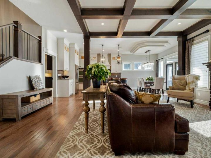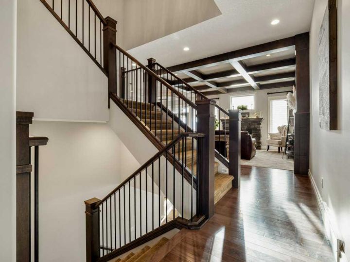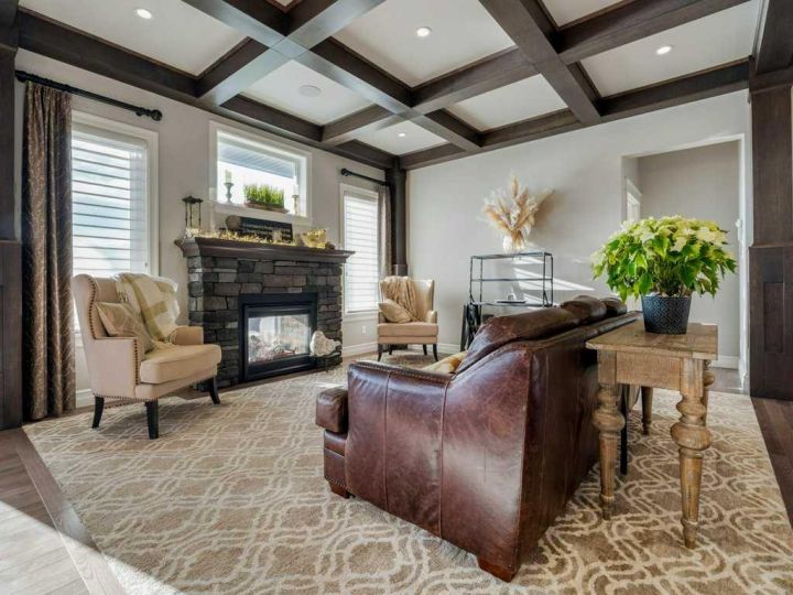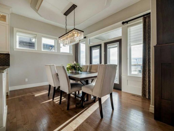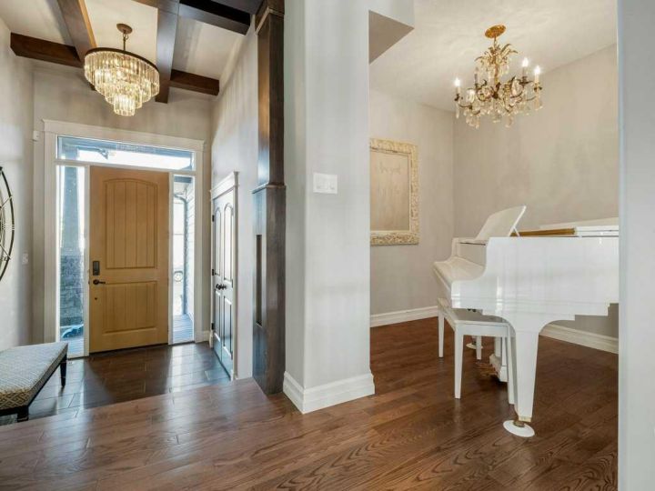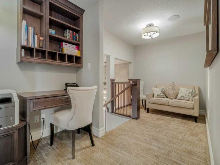 Former Signature Show Home in an amazing location. Fully developed, coffered ceiling in livingroom which features a stone fireplace, beautiful kitchen, Butlers Pantry off garage entry with laundry facilities. Dining area leads to deck with views that everyone will enjoy, part of the deck is covered with electric wind screens for added privacy and gas line for your BBQ. Double garage is heated with electric lift for storage shelf, plus water in garage. Primary suite on main floor with gorgeous ensuite bath, large walk-in closet with built ins. Other main floor bedroom has a murphy bed and was used as an office. Two generous size bedrooms upstairs as well as sitting area and built in desk at the top of the stairs. Basement has 9' ceilings and is an awesome entertaining space with walk out to patio, wet bar area, fireplace, plus a gym/dance studio with leather floor plus 2 more bedrooms. This home has so many upgrades and features, it would be an absolute pleasure to call Home.