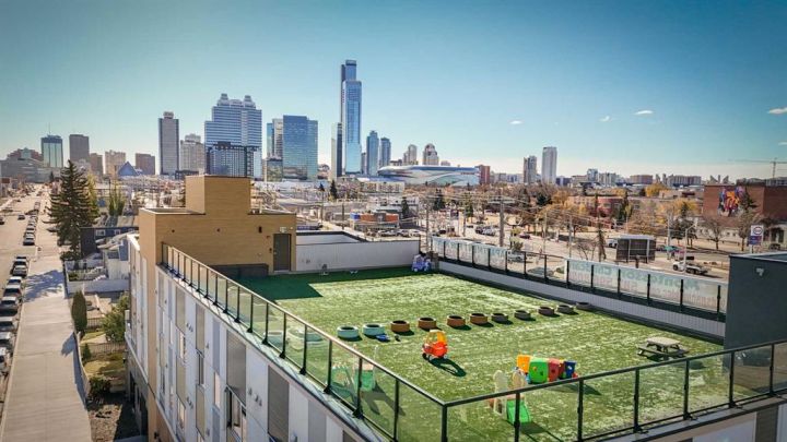 An exciting opportunity to own a mixed use building on the north side of downtown Edmonton. Main floor of the building is occupied by a long term daycare operator tenant. The main floor in its current setup is used entirely by the daycare but the south portion of it can be divided very easily into a smaller space as well. There is direct rooftop access from the main floor and completely separate from the residential floors. Daycare outdoor play area is on the roof and it is separate from rooftop access provided to residential tenants of the building. There are a total of 16 residential units; 10 one bedroom units, 2 two bedroom units and 4 studio units over two floors of the building. The building is located within walking distance to Royal Alex hospital, 2-3 minutes by car to the Ice District and between 97 and 101 street that provide easy access to and from the building. Additionally, in vicinity of the building is NAIT and Kingsway mall. Within the building you will find elevator access via 2 elevators Unit Counts: Studio Apts: 4 Bachelor Apts: 4 1 Bedroom Apts: 10 2 Bedroom Apts: 2 Main Floor: Daycare Tenant with 5500 sqft rooftop outdoor play area