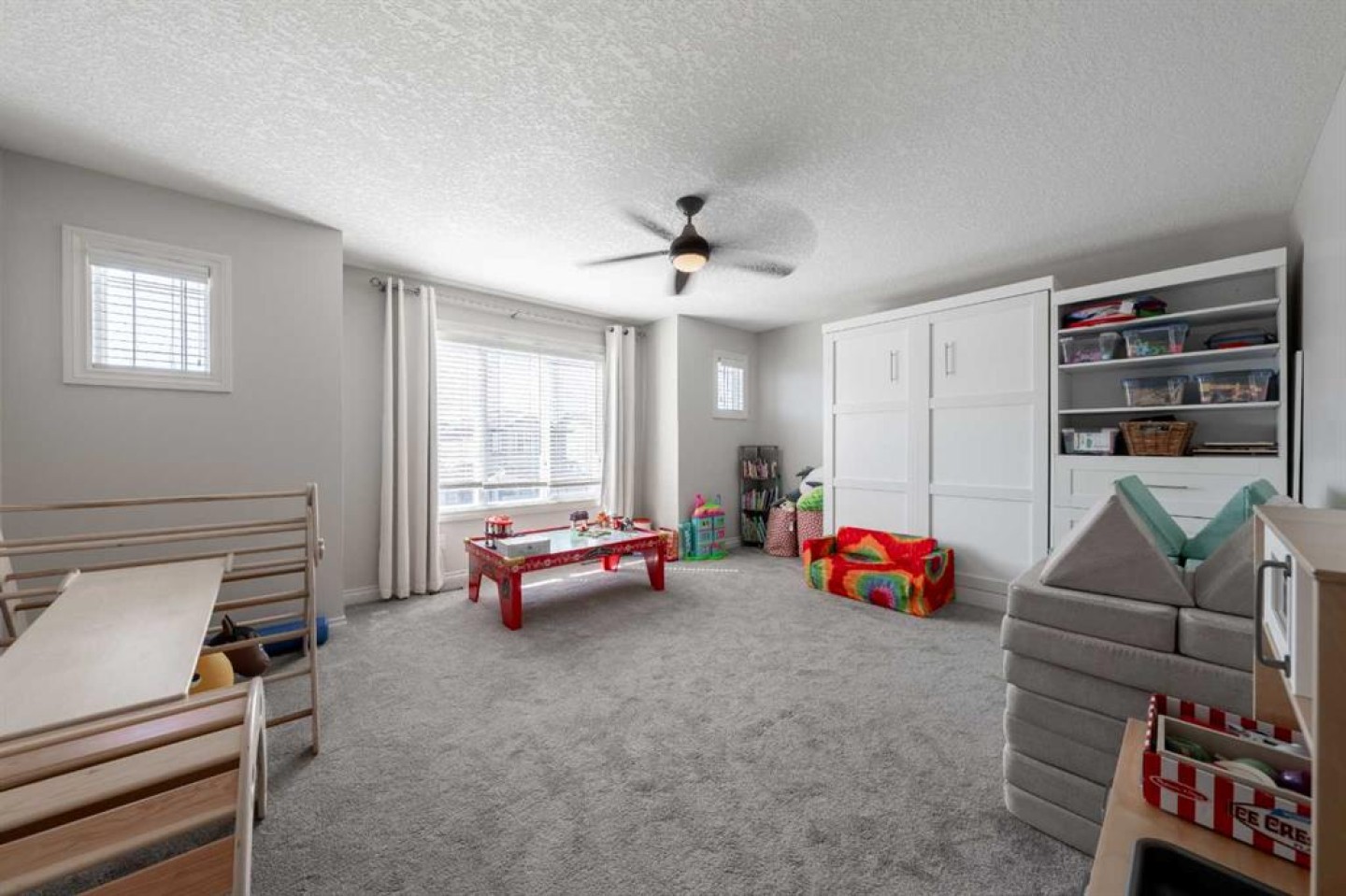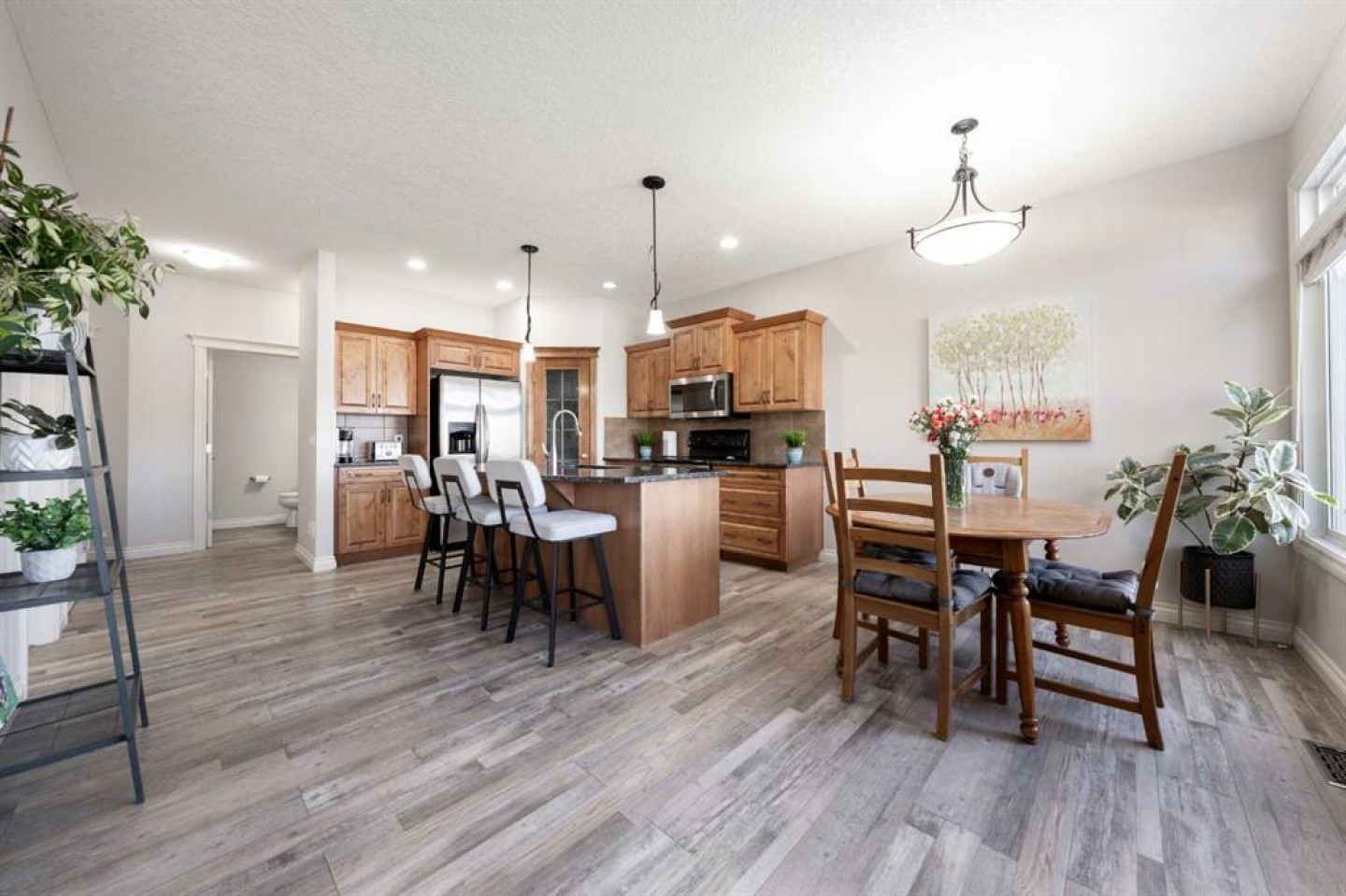 ***WELCOME HOME*** This Beautifully UPGRADED & Fully DEVELOPED family home is Nestled in the PRIME LOCATION on a quiet street, backing directly onto the GREENSPACE & PARK! Boasting nearly 2900ft of living space across 3 levels, this well-appointed home is designed with comfort and functionality in mind. The main level welcomes you with an open-concept layout highlighted by Luxury VINYL PLANK flooring, expansive WINDOWS & 9' ceilings - creating a BRIGHT and AIRY atmosphere. The CHEF'S Kitchen, featuring UPGRADED Cabinetry & Stainless Steel Appliances, Stone Countertops, large Central Island with eat-up bar and corner pantry, opens to the Dining Area and Living Room with cozy GAS fireplace - all showcasing the beautiful GREENSPACE & PARK VIEWS. A private front den/office (or 5th bedroom) and 2pc powder room complete this level. Upstairs, the PRIVATE master retreat offers a large WALK-IN closet & 5pc ENSUITE complete with double vanity, walk-in shower & oversized CORNER TUB. A huge BONUS/THEATRE ROOM, 2 additional bedrooms, another full bath & laundry room round off this level. The Fully DEVELOPED lower level features a large family room with another GAS FIREPLACE, WET BAR/Kitchenette, 4th bedroom, full bath & plenty of STORAGE SPACE! Ideal for movie nights, a growing family or having friends over for the big game, this level provides all the additional living space you'll need! Step outside into the fully fenced & landscaped backyard with direct access to the PARK, PLAYGROUND and WALKING PATHS right outside your gate! The large RAISED DECK is the perfect spot to enjoy the peaceful VIEWS while relaxing with your favorite drink or BBQing & entertaining friends & family! This lovely home features many recent UPGRADES including A/C, HW tank, some newer appliances & more! Prairie Springs is a VIBRANT Family Friendly Community, surrounded by great Schools, Walking Paths & Lush Greenspaces, YEAR-ROUND Outdoor Recreation & MORE, providing a prominent sense of community, livability & countless AMENITIES within walking distance! Simply MOVE IN & start making new memories with your Family in this fantastic TURN-KEY Home!