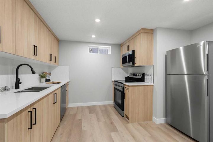Fully Renovated*** Illegal Suite*** total 6 bedrooms!!! Do not miss this opportunity to own a fully renovated home offering a total of six bedrooms, situated on a large lot on a quiet street in a desirable neighbourhood close to shopping, schools, parks, the airport, and with quick access to downtown. The main level features a bright and welcoming living room with a bay window, a brand-new custom kitchen with ample cabinetry, a dining area, and a conveniently located laundry closet in the hallway. All three bedrooms are generously sized, with the primary bedroom easily accommodating a king-size bed along with space for a sitting or makeup area. The illegal basement suite has a separate exterior entrance and is thoughtfully designed with an open kitchen and dining area flowing into the family room. Three spacious bedrooms are located downstairs, including one with walk-in storage, along with a full bathroom and laundry set up in the mechanical room. Recent upgrades include newer windows, a hot water tank (2022), and a newer furnace; NEW vinyl plank flooring throughout the entire house, Interior paint, NEW Kitchens, NEW Bathroom, NEW trendy backsplash, NEW Light fixtures etc. This move-in-ready home offers excellent flexibility for extended family, guests, or investment potential, with plenty of room to grow.
