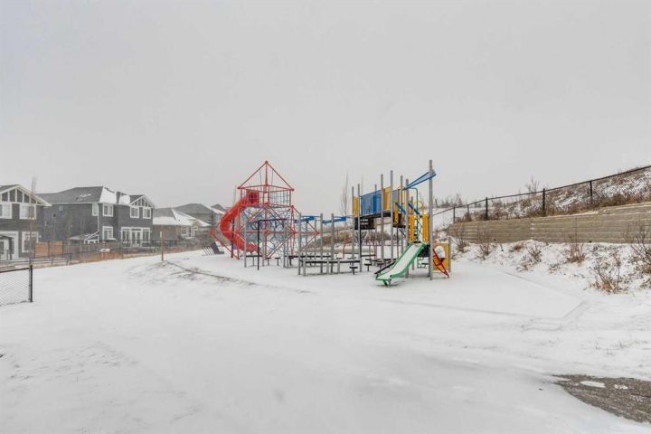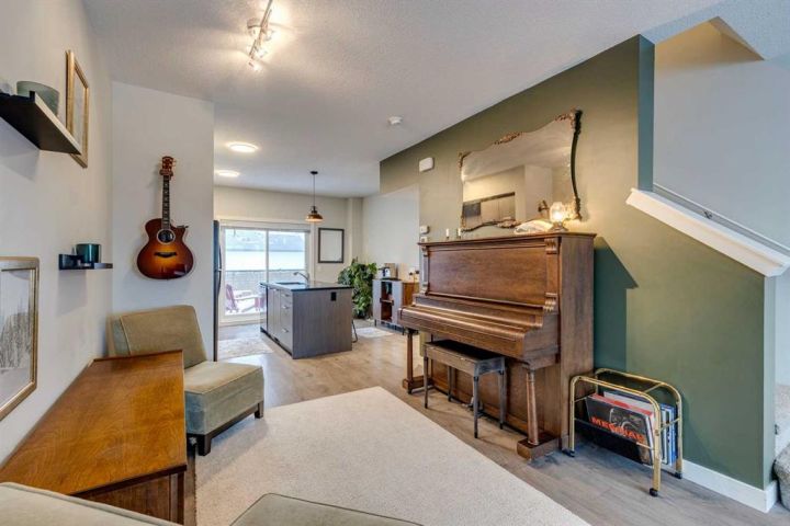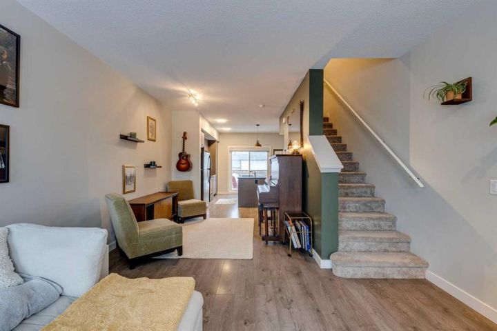 Welcome to 2103 Jumping Pound Common in Cochrane's sought-after Jumping Pound Ridge, where LOW CONDO FEES deliver exceptional value for modern, carefree living! Nestled just steps from Jumpingpound Creek and scenic walking trails, this impeccably designed 2017-built three-storey townhouse spans 1,280 sq ft of bright, inviting space, boasting two generous bedrooms, one full bath, one half bath, and a flexible den on the main level—perfect for a home office, workout area, or guest retreat. Ascend to the open-concept second floor, where a gourmet kitchen with sleek granite countertops, ample cabinetry, and premium appliances flows seamlessly into the living area, illuminated by abundant natural light and leading to a spacious balcony with gas line for effortless BBQs and outdoor enjoyment. Upstairs, the primary bedroom accommodates a king-size bed with ease, complemented by a second bedroom, full bathroom featuring a deep soaker tub, and convenient in-unit laundry. Finished with an insulated attached garage offering extra storage, this well-cared-for gem provides year-round appeal— from summer adventures along the Bow River to winter fun on Cochrane's top sledding hill, all near playgrounds, schools, shops, and quick access to Calgary. Seize this all-season haven—call a Realtor now to schedule a viewing!